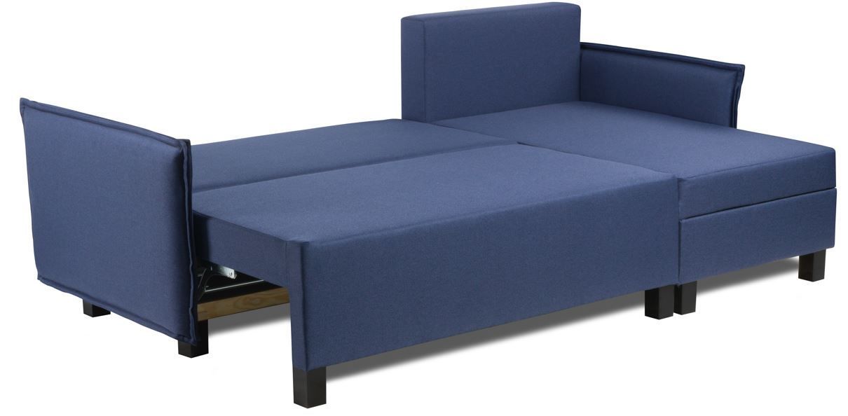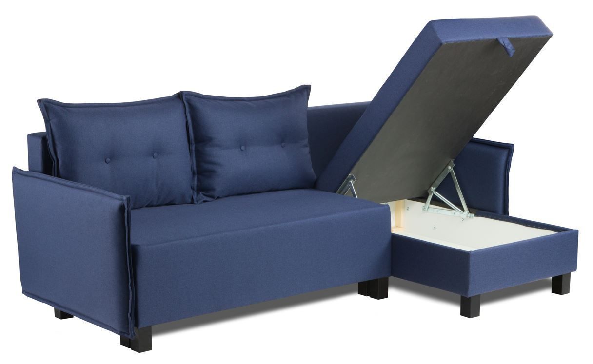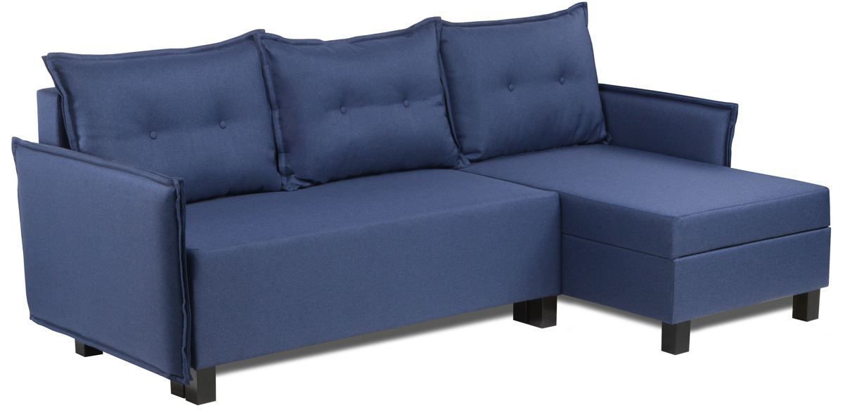 Угловые диваны с коротким подлокотником раскладного типа с ящиком для белья оптимальны для малогабаритных квартир. Занимают минимум пространства и имеют вместительное место для хранения постельных принадлежностей. Отсек для белья защищает вещи от пыли и загрязнения.