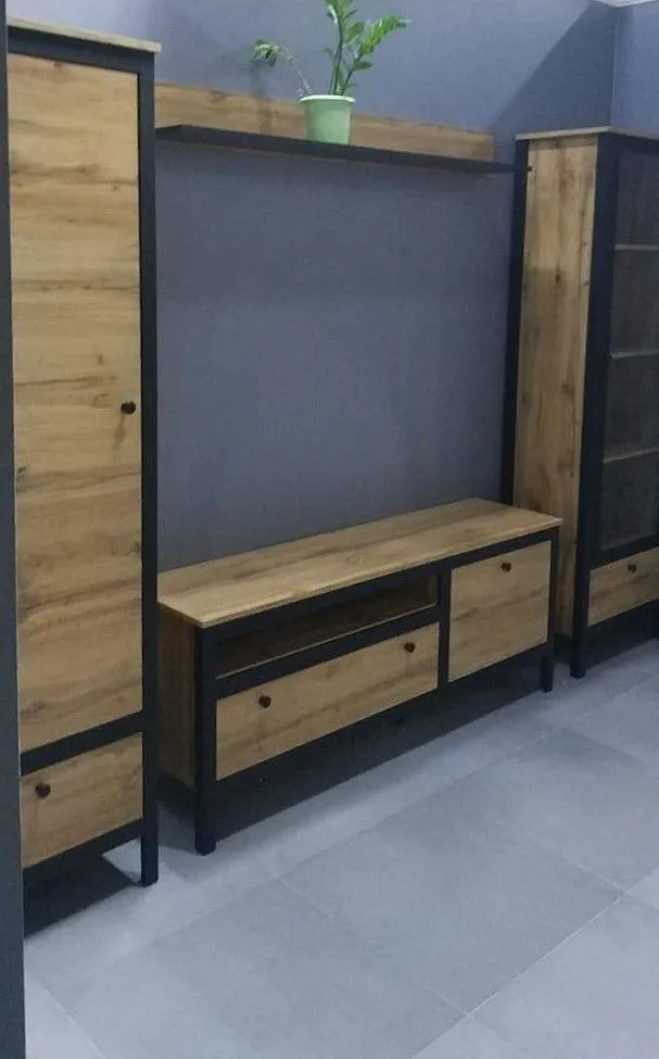 Сначала долго сомневалась, оформлять покупку или нет. Ведь комплект для гостиной выполнен в современном стиле. Поверхность имитирует фактуру дерева и при этом окрашена в два совершенно разных цвета — коричневый и серый. А мне хотелось что-то более привычное, например, коричневое. Но на фото мебель смотрелась так интересно и необычно, что я все таки решилась купить. Честно, уже неделю радуюсь покупке! Классная она.
