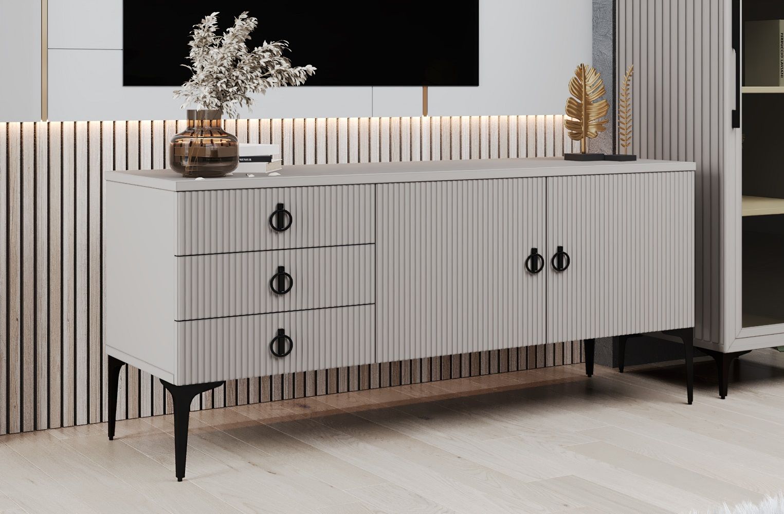 Каждая деталь спальни тщательно продумана, чтобы подарить вам не только максимальный комфорт и эстетическое удовольствие, но и уверенность в высоком качестве мебели. Корпуса и столешницы модулей выполнены из ламинированной древесной плиты европейского качества, Фасады из природного МДФ задекорированы рельефной фрезеровкой и авторский стиль фабрики ЭРА — это финишное покрытие матовая итальянская эмаль ярко серого цвета.