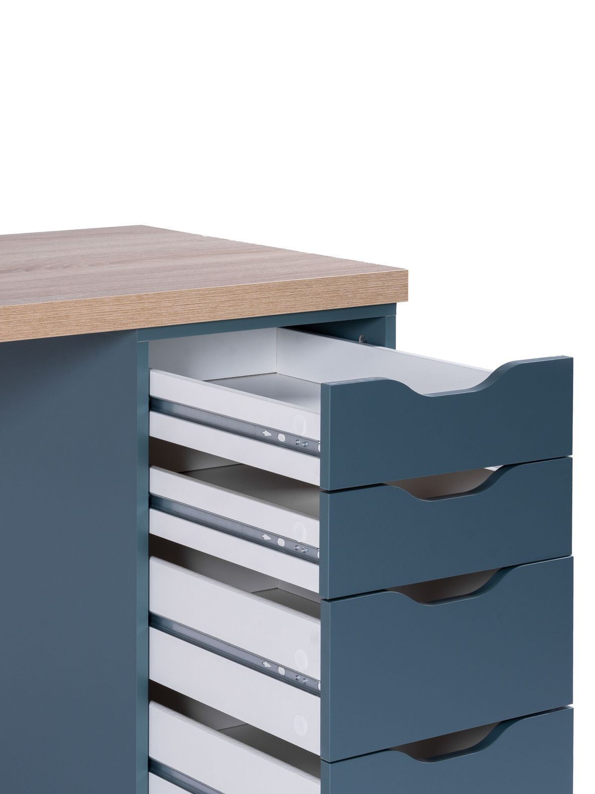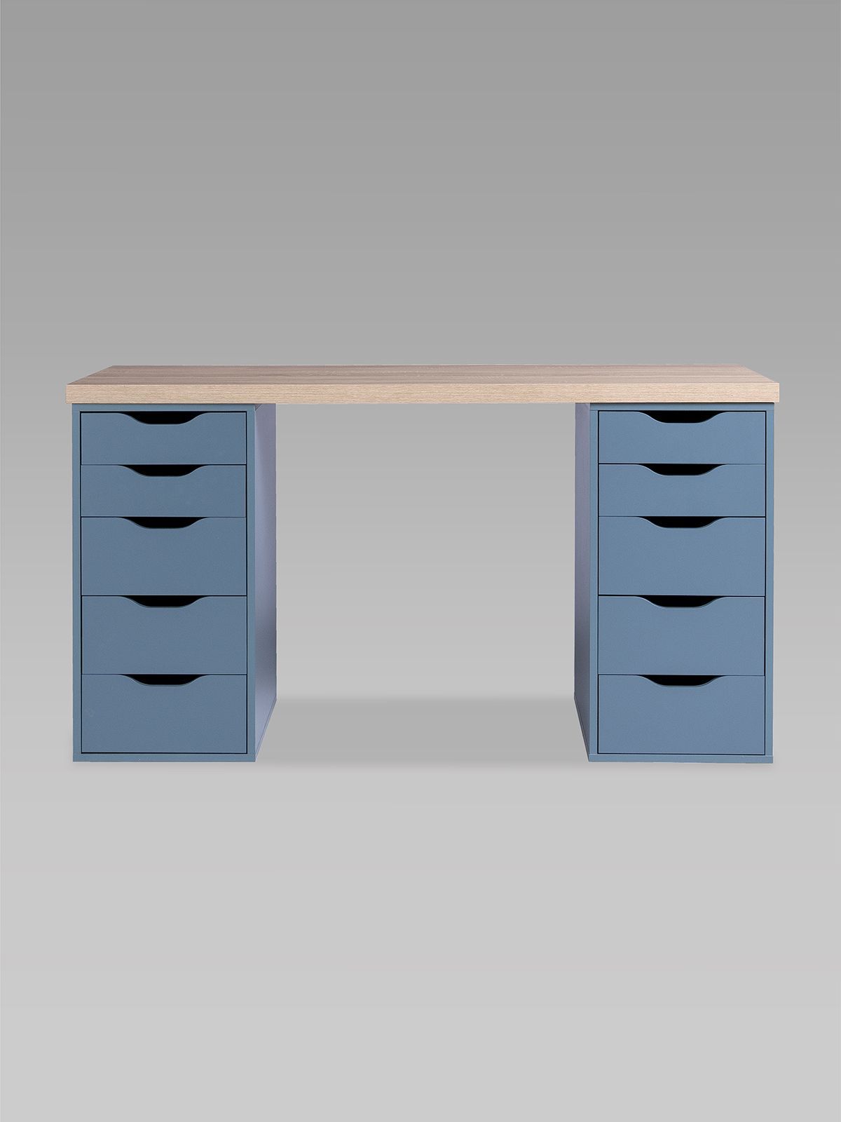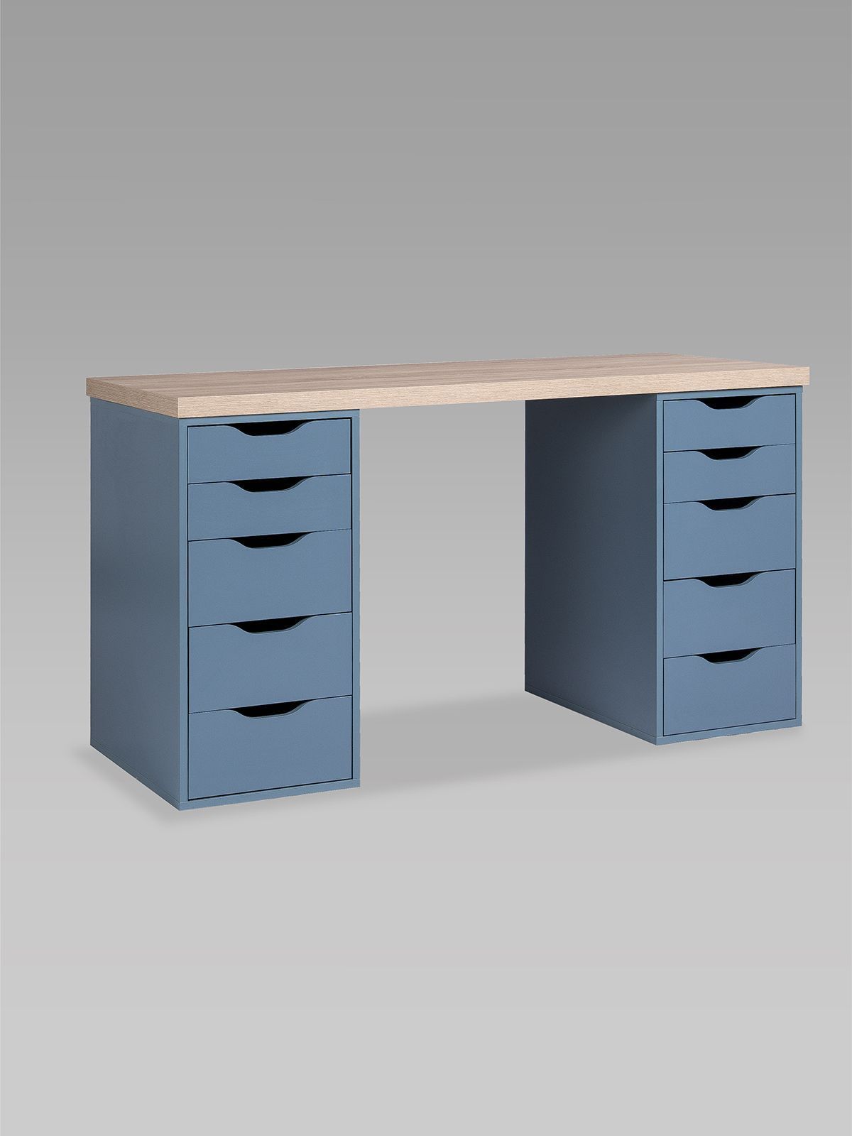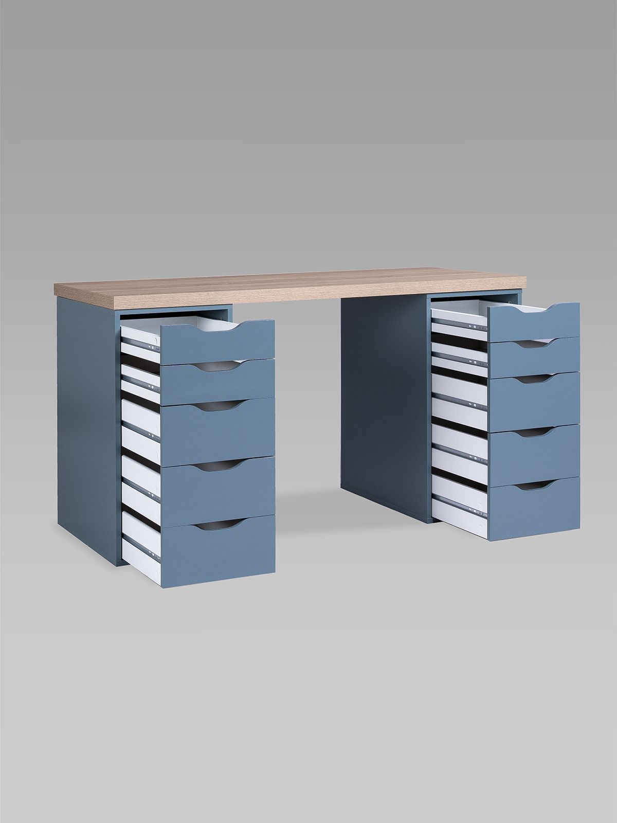Стол письменный Ингар, 10 ящиков, 140х75х55 см, серо-бирюзовый, столешница дуб беленый