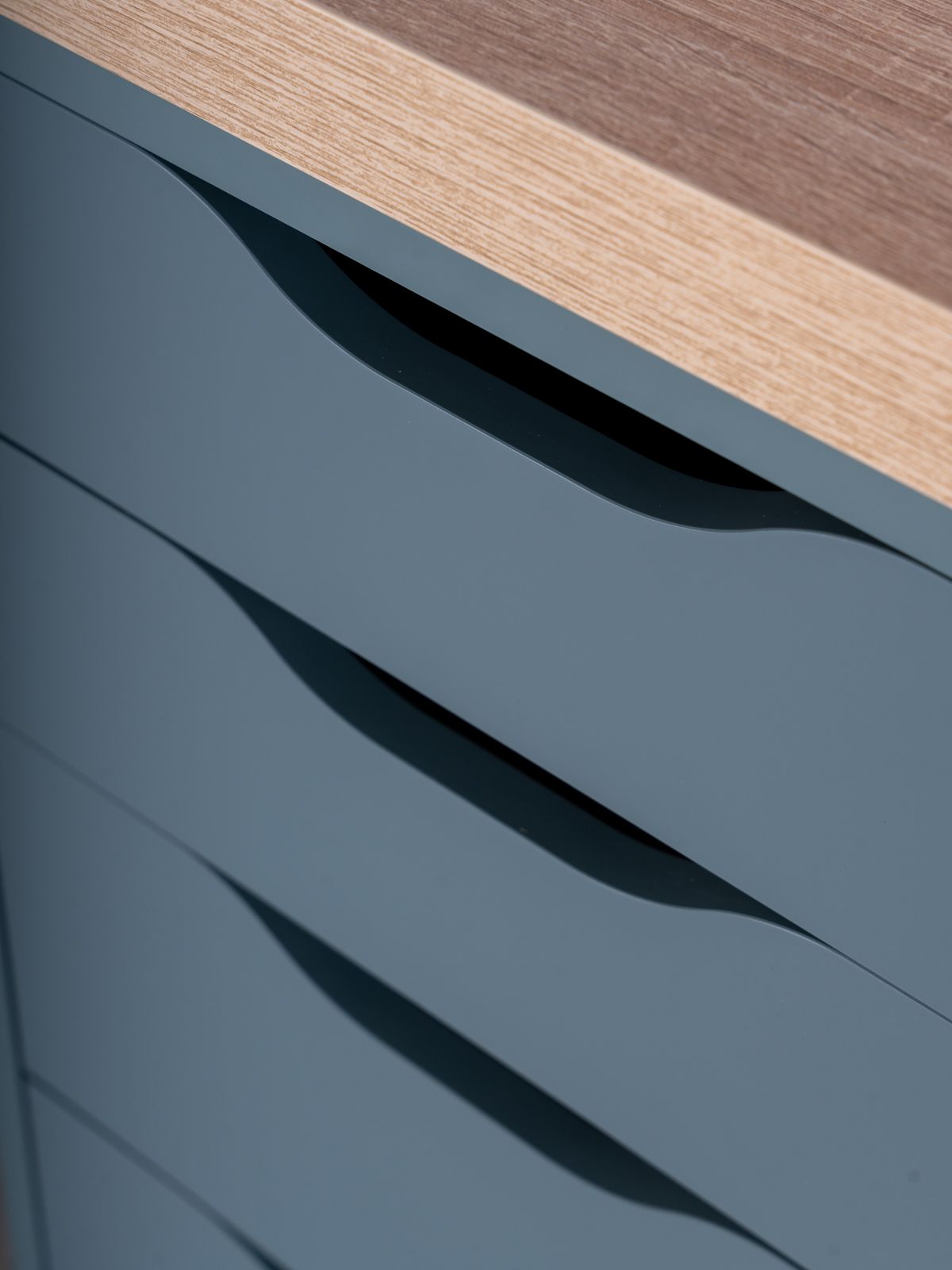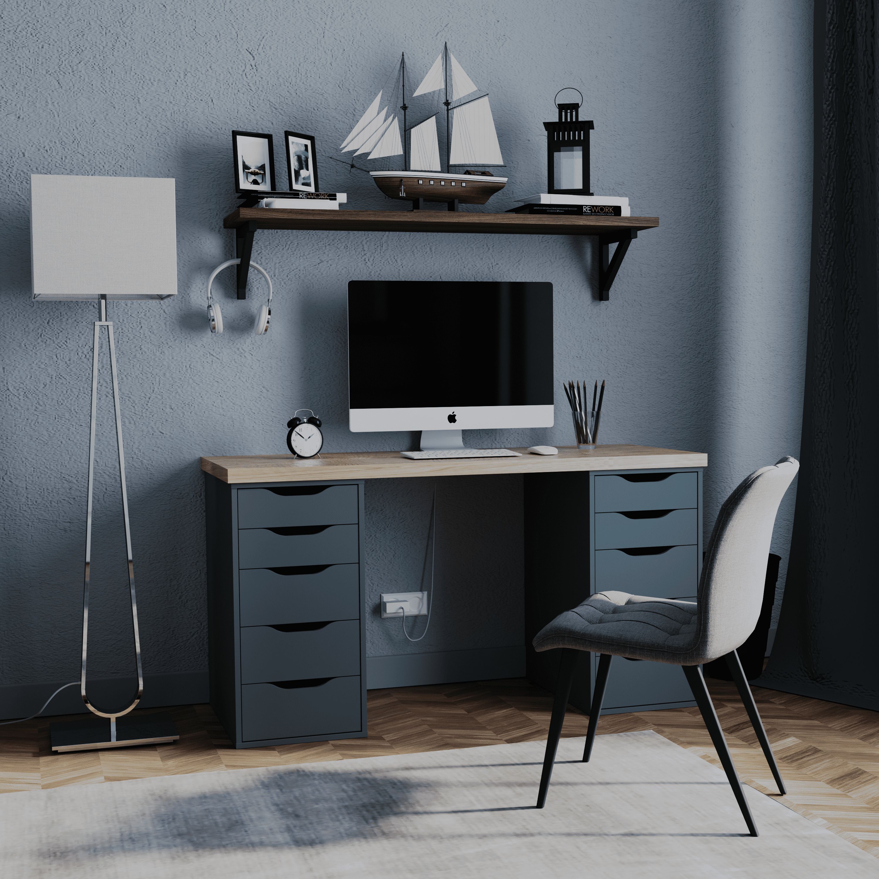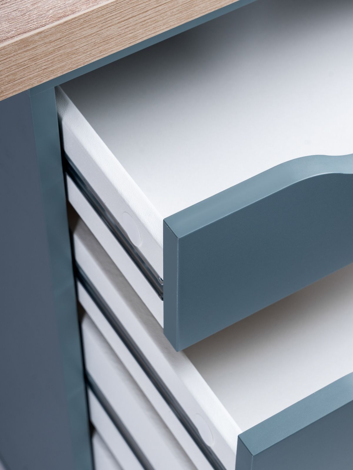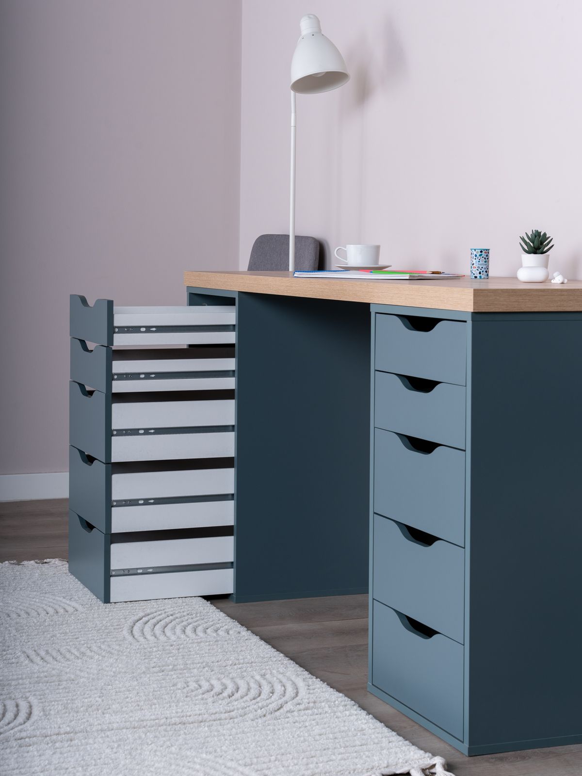 Стол письменный Ингар, 10 ящиков, 140х75х55 см, серо-бирюзовый, столешница дуб беленый