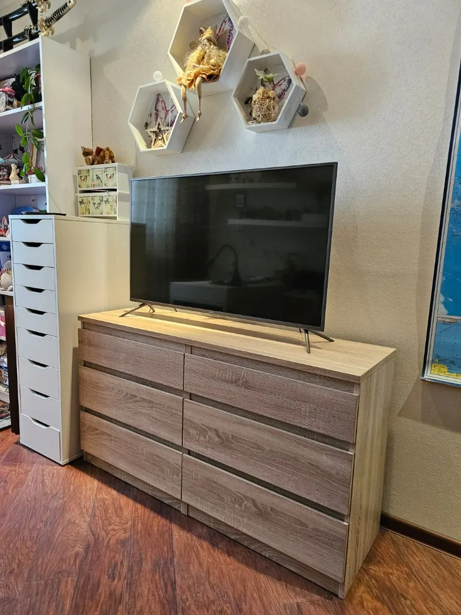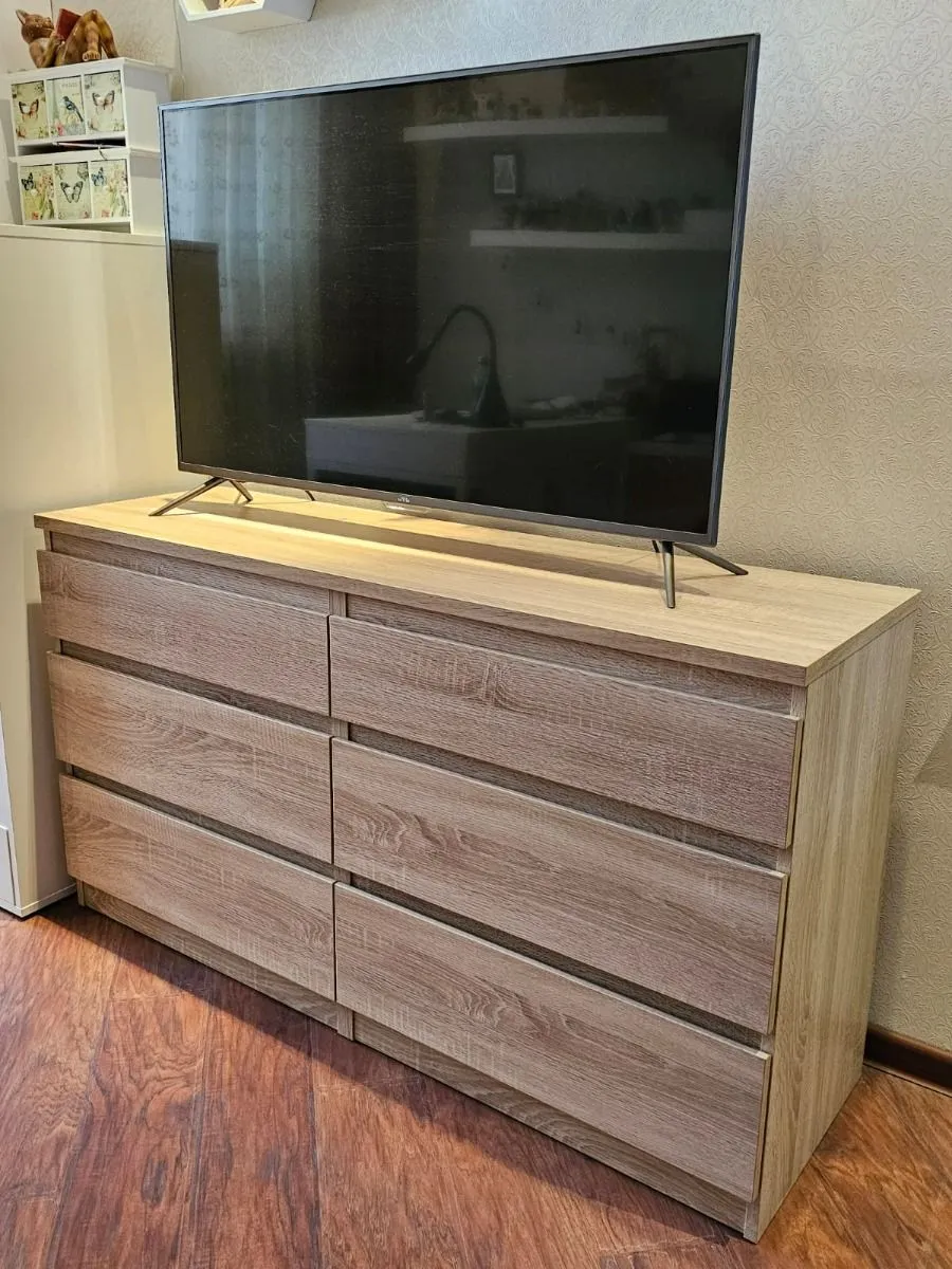 Хороший комод. Использую как тумбу под телевизор. Сборка заняла час времени. Вместительный. Высота комода устраивает. Рекомендую.