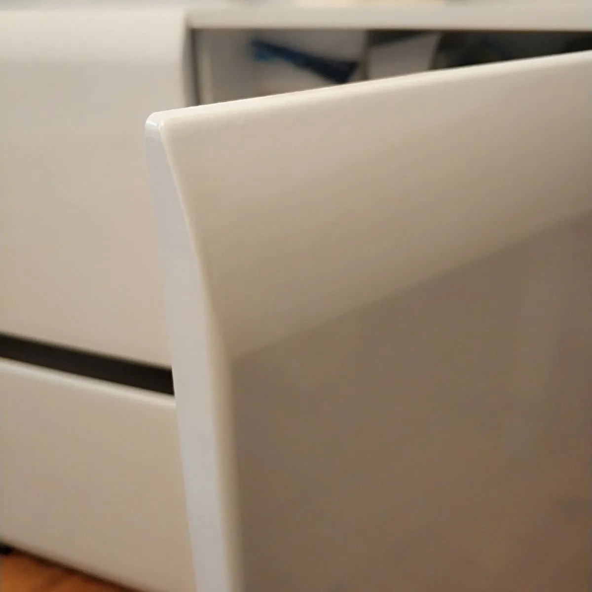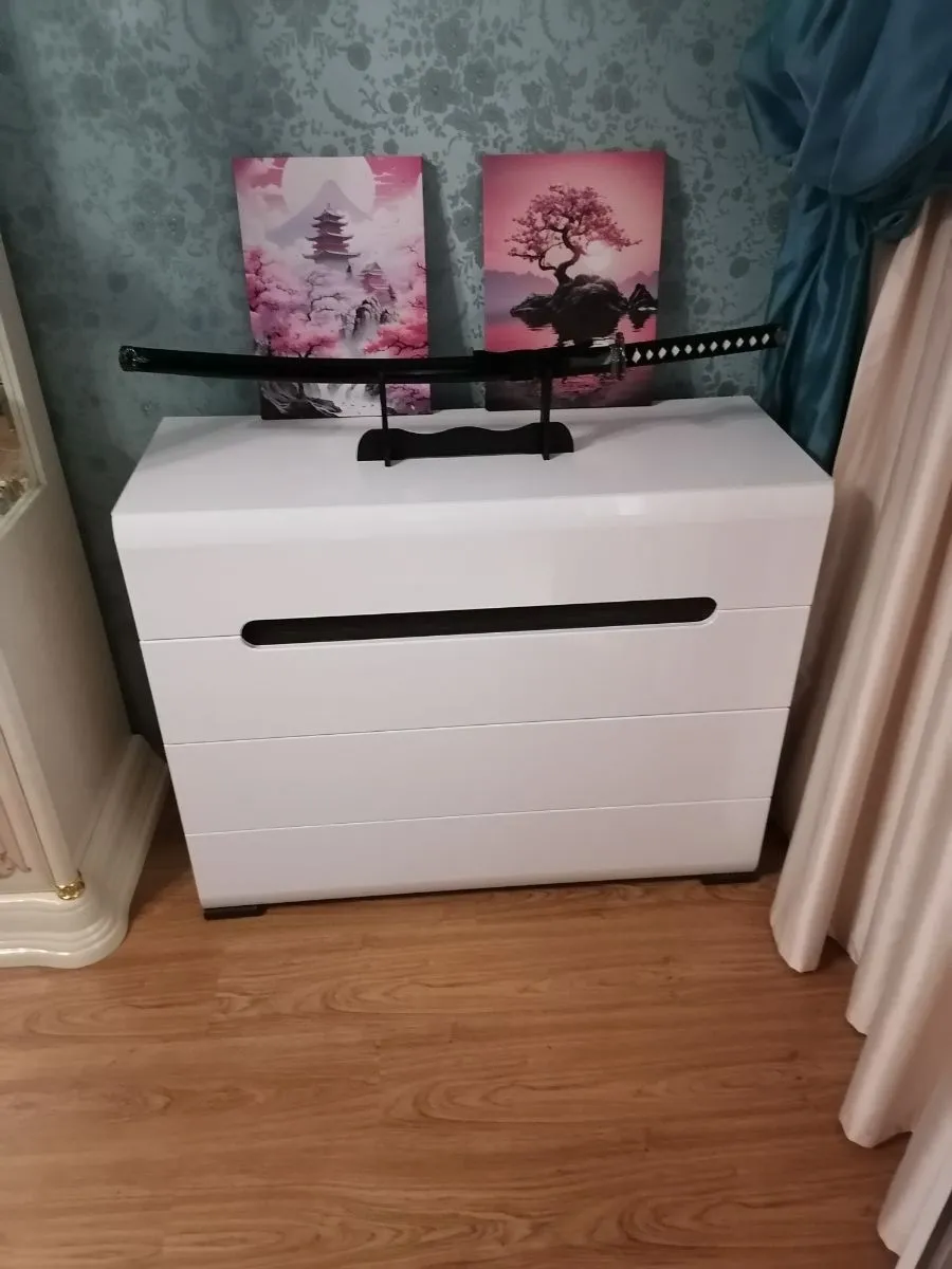 Отличный комод.Искал красивую тумбу под ТВ,но нашел прекрасный комод..Сейчас нет DVD, видиков,саундбар заменяет акустику,а в комод можно использовать и по своему назначению еще.Дизайн комода на высоте,фронтальные панели глянцевые в защитной пленке,МДФ хороший,дорогие направляющие Hafele скрытые с доводом при окончании закрытия.Ручки для открывания ящиков нормальные,немного неудобно,но зато фасад комода свободен от этого.Разметка для сборки отличная,при сборке есть нюансы,но интересно самому разобраться в этом,время,конечно заняло,инструкция так себе.Место для хранения не очень много,но меня устраивает.В общем отличный добротный комод.Дошло все в отличном состоянии,продавец все зарешетил в дерево.Доставка была из Москвы Деловыми линиями.Продавец отличный,по цене самый гуманный.Спасибо Мебель голд за отличную цену,за упаковку и доставку.Все очень профессионально,приятно иметь с вами дело.Спасибо Озон за возможность купить очень качественный товар.