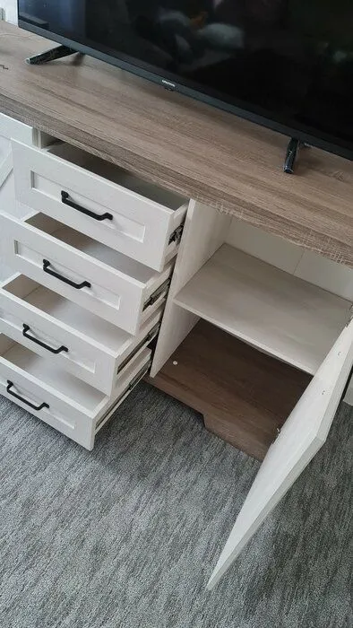 Шикарный комод! Упакован очень хорошо, коробки усилены транспортировочным ДСП. Инструкция понятная, некоторые детали промаркированы, чтобы не перепутать при сборке. Я-женщина собрала комод за 3 часа :)