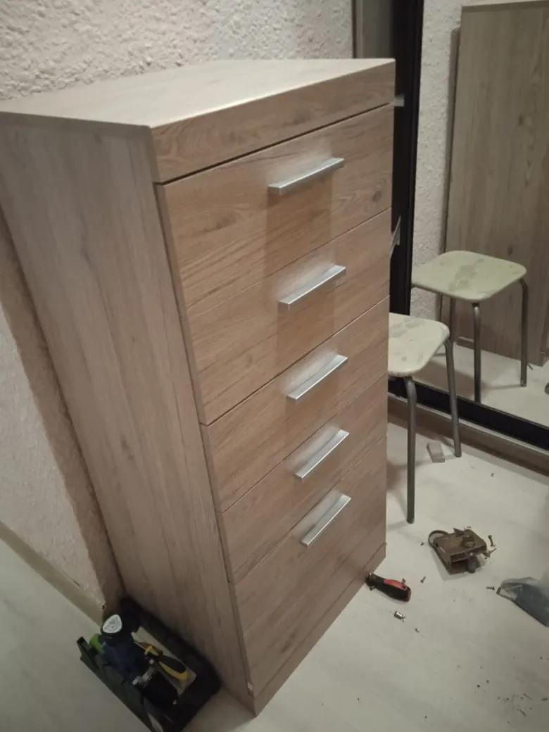Все детали комода качественные и были хорошо упакованы, сколов нигде замечено не было. Собирался легко, инструкция простая, но понятная, проблем со сборкой не возникло. Ящики выдвигаются плавно. Отличный комод, рекомендую к покупке.