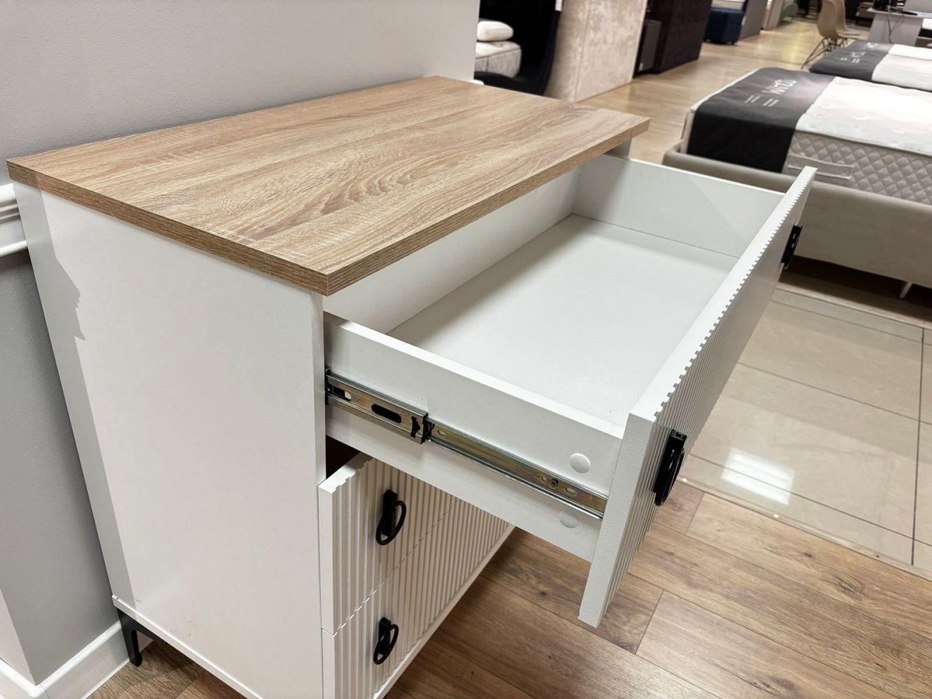 Дополняют кровать стильные и функциональные прикроватные тумбы "Стелла". Их рельефные фрезерованные фасады и элегантные ручки делают их настоящим украшением спальни. Ящики оснащены современными бесшумными механизмами с доводчиком  Внутри  достаточно места для хранения личных вещей.