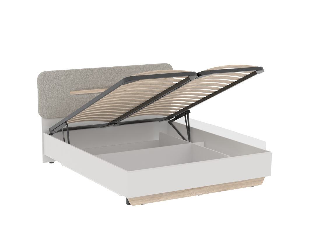 Кровать оснащена коробом для белья с подъёмным механизмом.