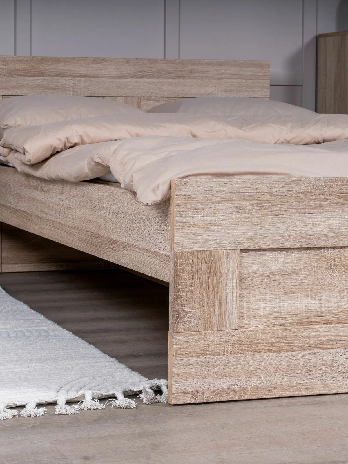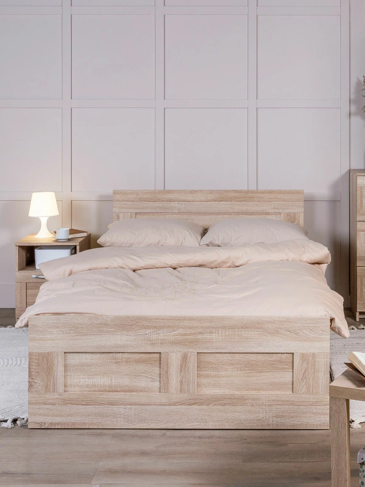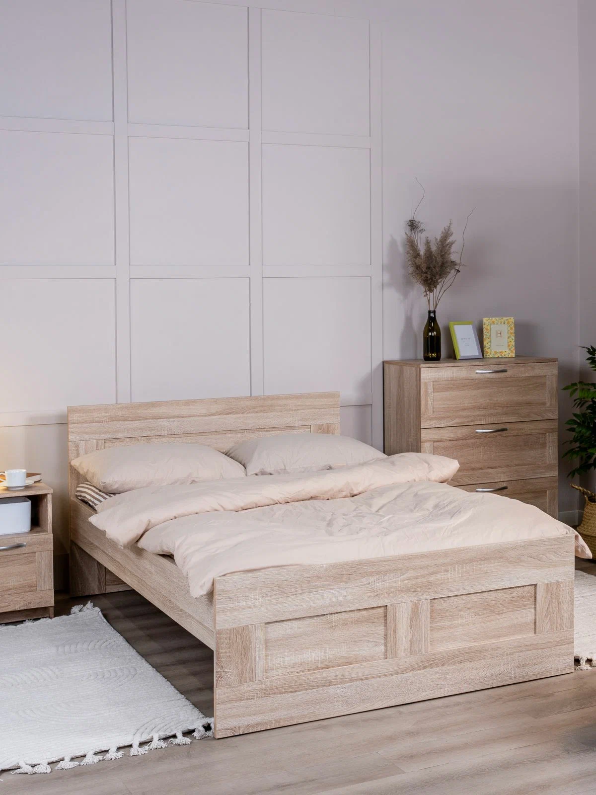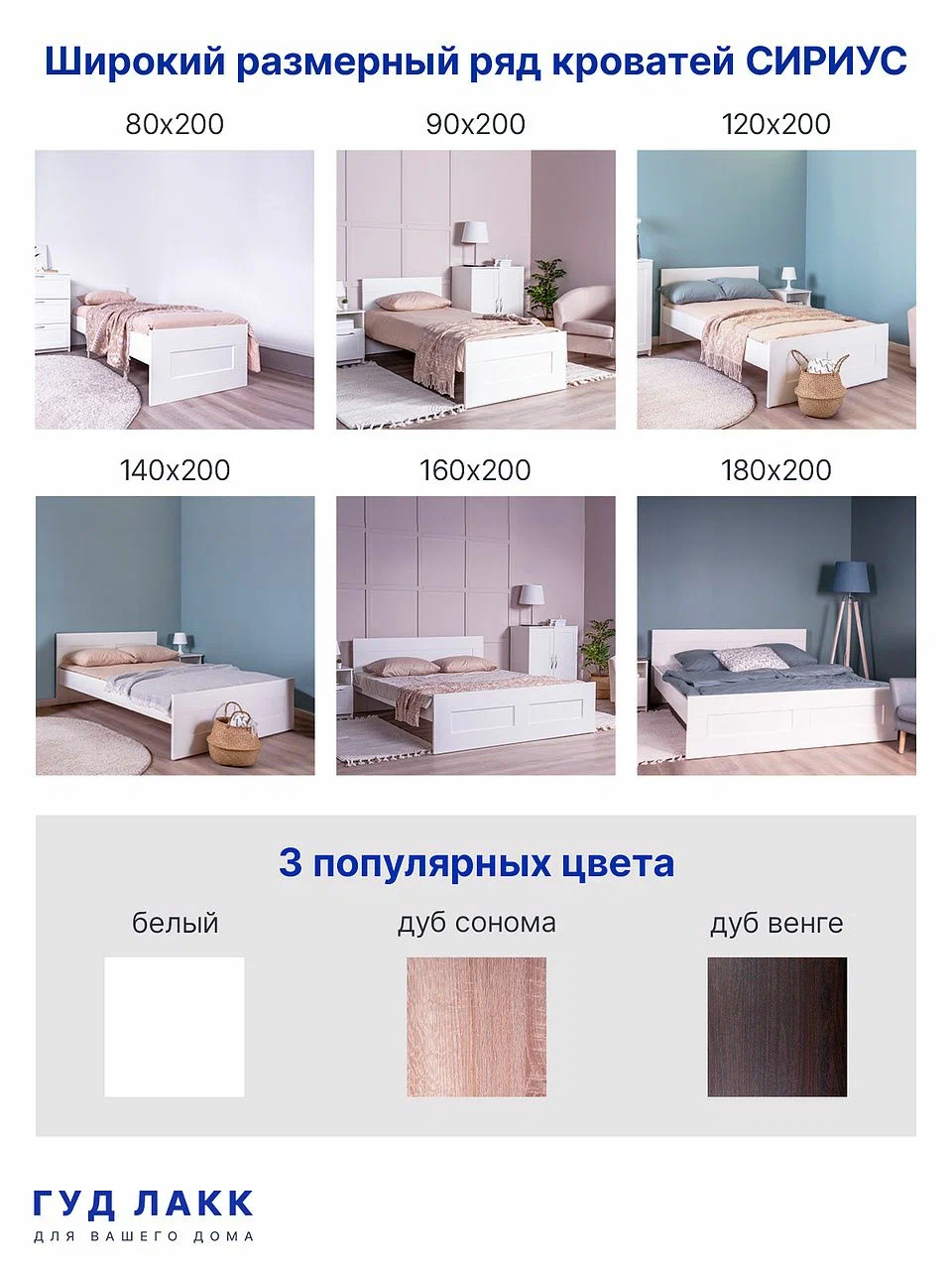 ГУД ЛАКК — знакомая мебель, которую легко купить и собрать! Кровать двуспальная ГУД ЛАКК СИРИУС, 120х200 см — элегантность и качество в каждой детали! Серия мебели СИРИУС вдохновлена популярной серией BRIMNES от IKEA, и станет идеальным дополнением вашей квартиры. Лаконичный дизайн гармонично впишется в любой интерьер, а компактные размеры не займут много места. Почему выбирают двуспальную кровать ГУД ЛАКК СИРИУС, 120х200 см? Кровать СИРИУС — это функциональное и стильное решение, которое идеально подходит для небольших помещений и тех, кто ценит практичность. Вот ее основные преимущества: Кровать СИРИУС имеет оптимальные размеры, и при этом является полноценным двуспальным решением для сна. Ее компактный дизайн позволяет максимально эффективно использовать каждый квадратный метр, не жертвуя при этом комфортом. Как и большинство продуктов ГУД ЛАКК, кровать СИРИУС предлагает отличное соотношение цены и качества. Это доступное решение для тех, кто ищет функциональную и стильную мебель, не переплачивая за ненужные излишества. Кровать оснащена прочными планками из нержавеющей стали, на которых покоится ортопедическое реечное дно. Это обеспечивает надежную поддержку и комфорт во время сна. Вам нужно лишь дополнить кровать матрасом на ваш выбор — и удобное спальное место готово! Кровать так же можно дополнить вместительными подкроватными ящиками ОРИОН, что обеспечить место для хранения пледов, подушек, одеял и многого другого, а также прикроватными тумбами СИРИУС, чтобы все нужное всегда было под рукой. Кровать СИРИУС подходит как для детей, так и для взрослых. Ее можно использовать в спальне, гостевой комнате или даже в небольшой квартире-студии. Ее универсальный дизайн и нейтральная цветовая гамма позволяют ей гармонично вписаться в любой интерьер — от скандинавского до современного минимализма. Кровать СИРИУС — это идеальное сочетание функциональности, стиля и доступности. Она станет надежным помощником в организации пространства и создании уютной атмосферы в вашем доме. С ней вы сможете наслаждаться комфортным сном и рационально использовать каждый сантиметр площади!! УЗНАВАЕМЫЙ ДИЗАЙН В СТИЛЕ СКАНДИНАВСКОГО МИНИМАЛИЗМА. Кровать с филенчатым фасадом — это элегантное решение, которое добавляет изысканности, и может использоваться в любых интерьерах. ЭКОЛОГИЧНОСТЬ. Наша мебель производится на заводе полного цикла по принципу «от древесины до готового изделия». При этом применяются максимально жесткие требования к экологичности на уровне, установленном для детской мебели. КАЧЕСТВО НА УРОВНЕ IKEA. Кровать СИРИУС изготовлена на сертифицированной фабрике в Беларуси, которая ранее производила мебель для шведского бренда. Кстати, в том числе поэтому наш ассортимент прекрасно сочетается с мебелью ИКЕА, которая, возможно, есть у Вас дома. Сочетается как по дизайну, так и за счет совпадения цветовой гаммы. ЛЕГКОСТЬ СБОРКИ. Вы можете сами легко и быстро собрать нашу мебель, что позволит сэкономить и время на ожидание сборщика, и деньги на оплату его услуг. А поможет в этом не только высокое качество изготовленной мебели, но и понятная пошаговая инструкция. Кстати, если вы вдруг потеряли инструкцию, ее всегда можно скачать здесь, в карточке товара. НАДЕЖНОСТЬ. Несмотря на то, что гарантийный срок на мебель по закону составляет 24 ме