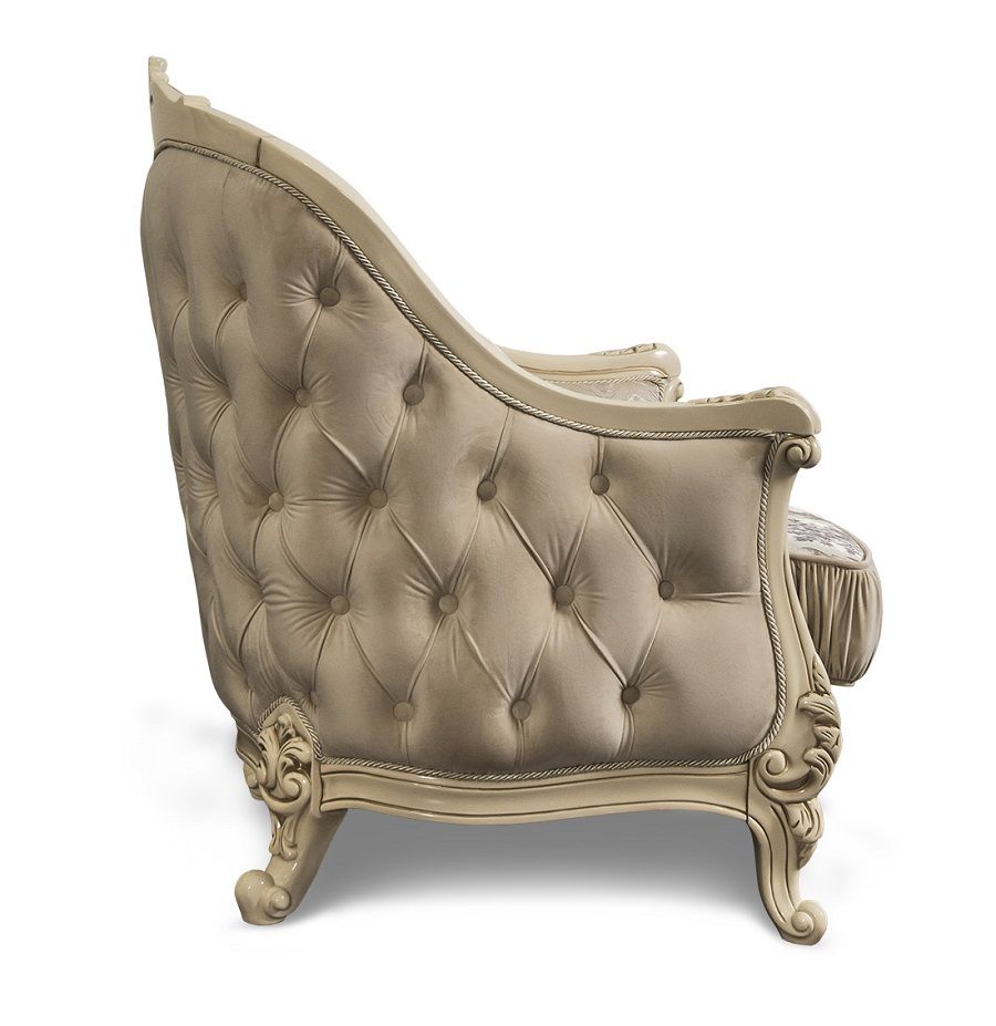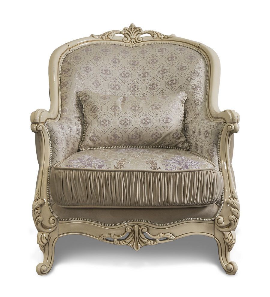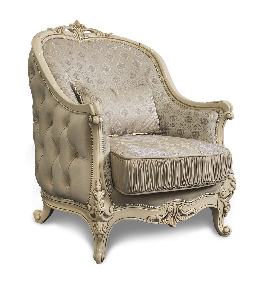 Классическое кресло «Мона Лиза» размером 90х105х90 см (ш/в/г) в цвете крем идеально впишется в интерьер гостиной, кабинета и домашней библиотеки классического стиля. Его можно использовать отдельно, как акцент, или в комплекте с диваном и другой мебелью серии «Мона Лиза».