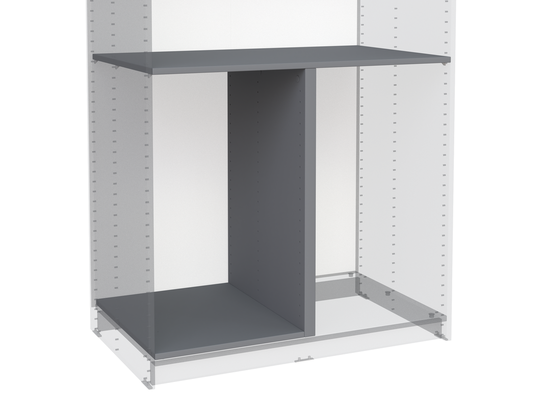 Секция разделительная МАКС 100х58, цвет Серый Толщины деталей: ДСП 18 мм, перегородка 36 мм Фурнитура: полкодержатель пластмассовый с фиксатором