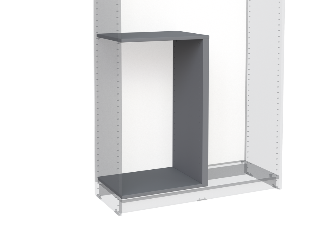 Секция разделительная МАКС 75-100х36, цвет Серый Толщины деталей: ДСП 18 мм, перегородка 36 мм Фурнитура: полкодержатель пластмассовый с фиксатором