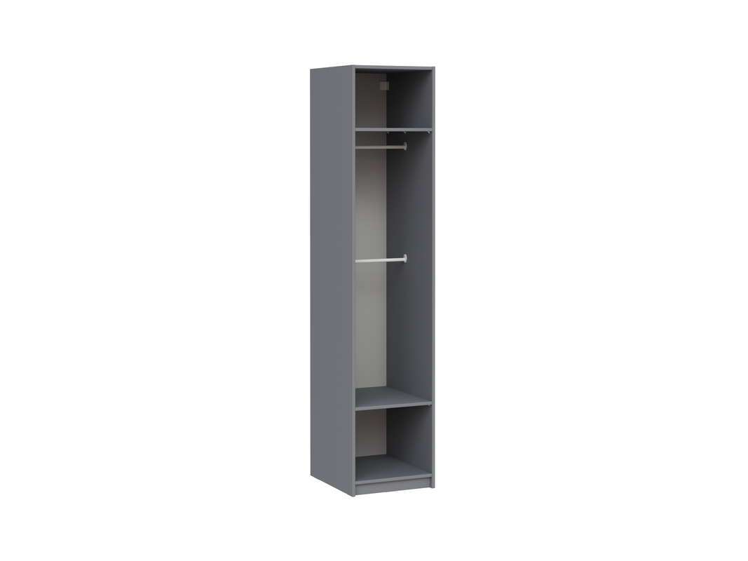 Стеллаж МАКС 50х58х233, цвет Серый Имеется возможность установки полок на желаемом уровне, имеется возможность установки штанги на желаемом уровне Толщины деталей: ДСП 18 мм Фурнитура: две штанги овальные металлические, полкодержатель пластмассовый с фиксатором
