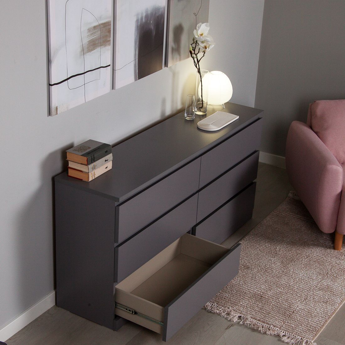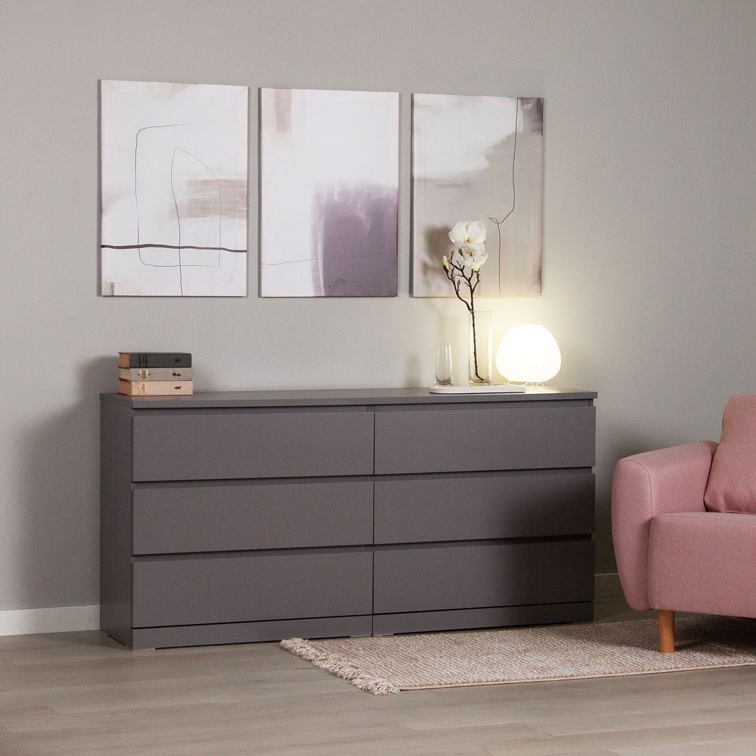 ГУД ЛАКК - знакомая мебель, которую легко купить и собрать! В широком сером комоде ВАРМА любители минимализма легко узнают верного шведского друга сериии МАЛЬМ ИКЕА. Продуманный до мелочей дизайн комода прекрасно впишется в гардеробную, спальню или гостиную. Комод ВАРМА не занимает много места и при этом достаточно вместительный, а гладкий фасад без ручек придется по душе поклонникам практичности. Может быть использован как самостоятельный предмет мебели, так и в качестве подставки для телевизора. Товары ГУД ЛАКК изготовлены на современных фабриках в Беларуси, которые производили мебель для широко известной шведской сети гипермаркетов IKEA. По отзывам наших покупательниц, со сборкой без проблем справится женщина при наличии шуруповерта. Обратите внимание, что ящики в комоде без доводчиков.Рекомендуем протирать тканью, смоченной мягким моющим средством.