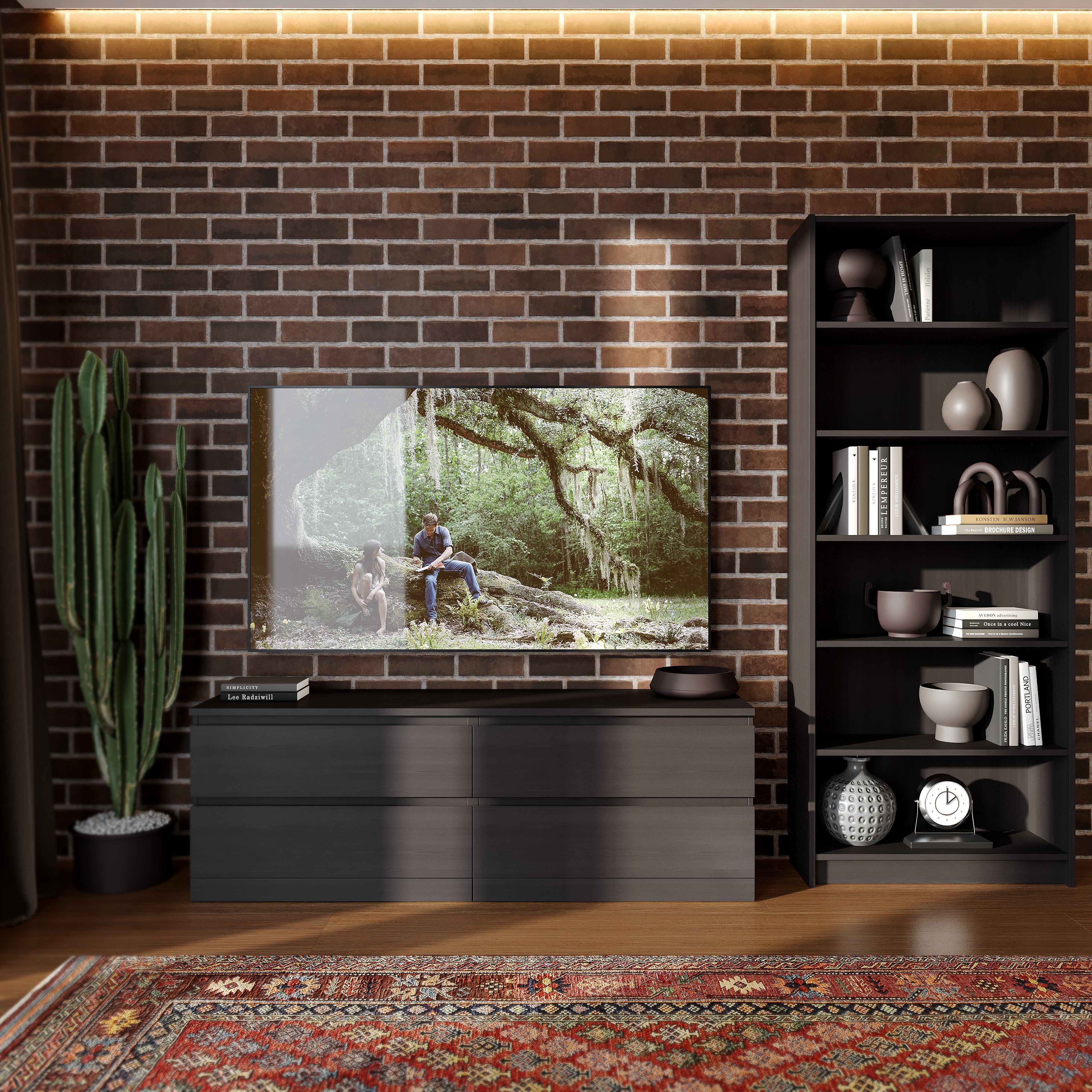 Стеллаж Варма, 6 полок, 78х198х28 см, шпон ясень, черный