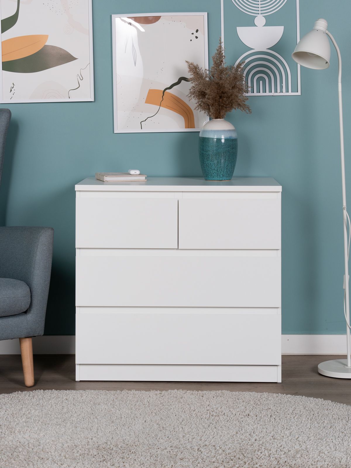 Комод Мальта, 2+2 ящика, с доводчиками, 80х48х76 см, белый