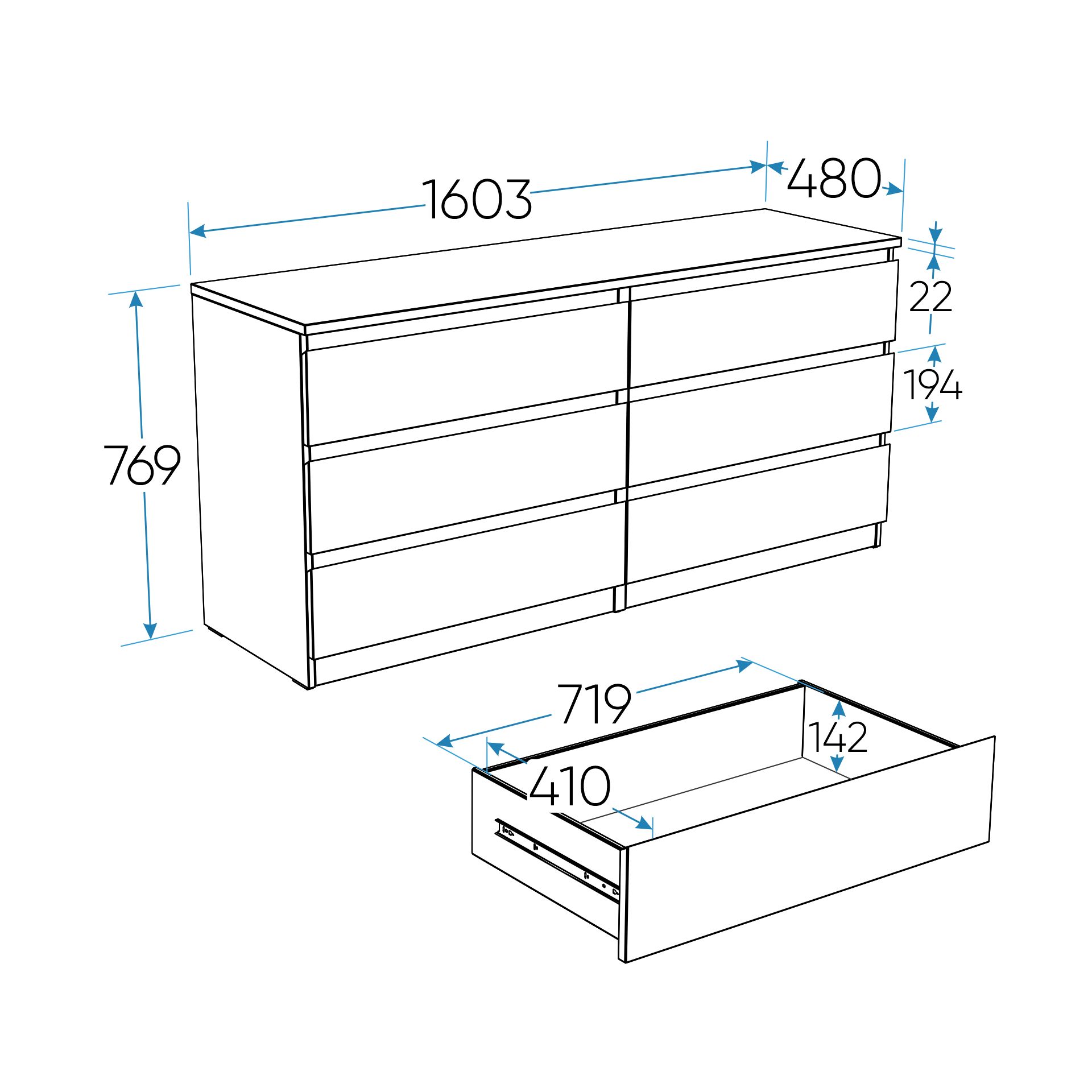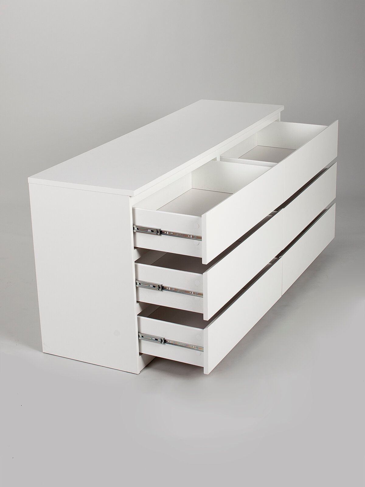Комод Мальта, 6 ящиков, горизонтальный, с доводчиками, 160х48х76 см, белый