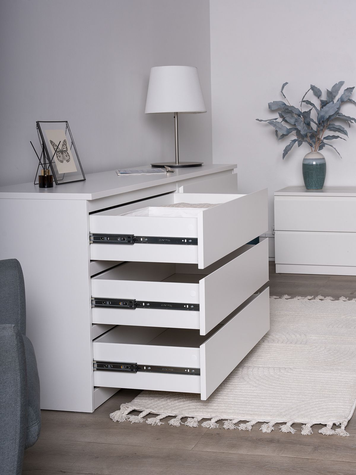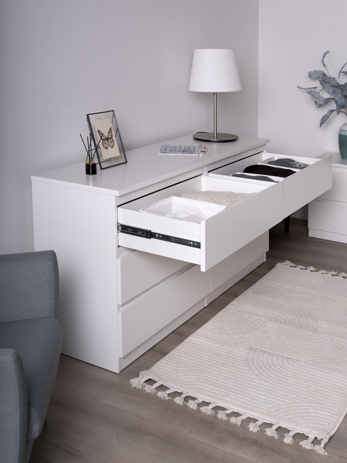 Белый комод МАЛЬТА - это знакомая поклонникам скандинавского стиля серия MALM IKEA. Нейтральный дизайн комода подойдет к любому интерьеру и будет лаконично вписан в спальню, гардеробную или гостиную. Может быть как самостоятельным предметом мебели, так и в качестве тумбы под телевизор.