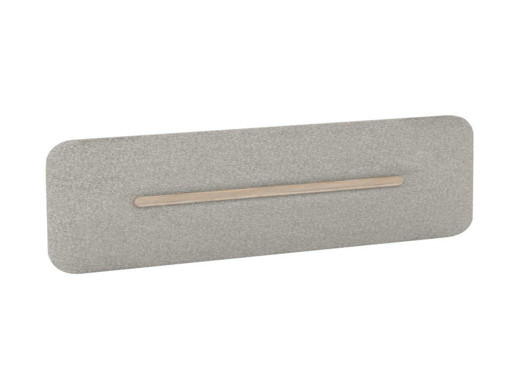 Спинка кровати мягкая со вставкой под дерево. Обивочная ткань спинки выполнена из фактурного «велюра» с эффектом новомодной буклированной ткани двух оттенков. Выгода велюра в том, что он легче поддаётся очистке специальными средствами нежели натуральная ткань «букле».