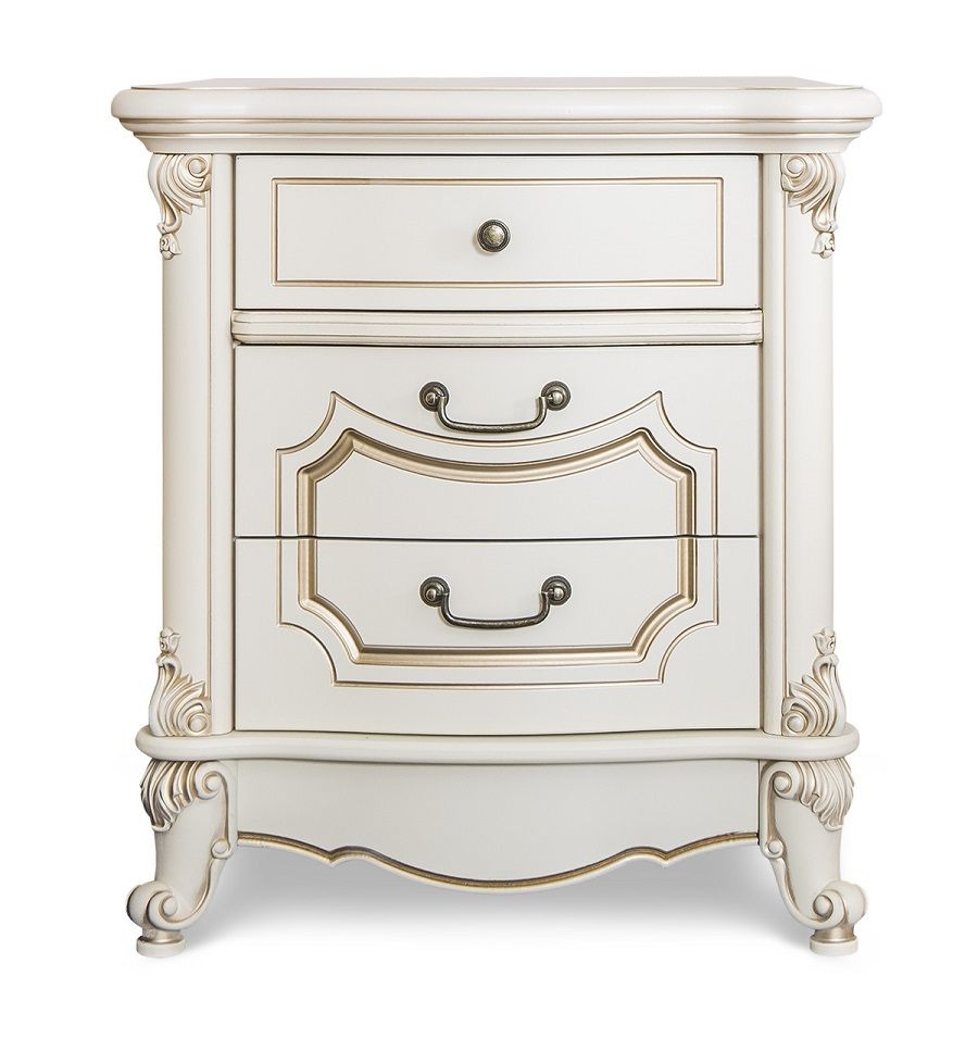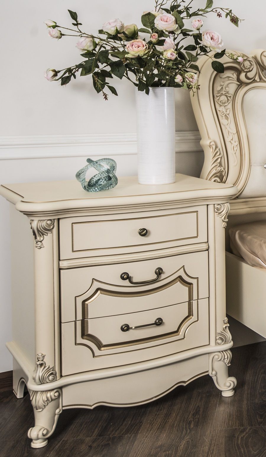 Сочетание изысканного декора и нежного крема делают прикроватную тумбу «Мона Лиза» главным элементом спальни. В таком привлекательном виде она обеспечивает уют и создает комфортную зону для хранения разных мелочей. При изготовлении тумбочки используется древесностружечная плита с влагостойким ламинированным покрытием. Ее фасады оформлены лакированной МДФ с трехслойным покрытием безопасными красящими составами. Декоративные элементы (узоры и завитки) выполнены из плотного пенополиуретана и нанесены с помощью технологии шелкографии.