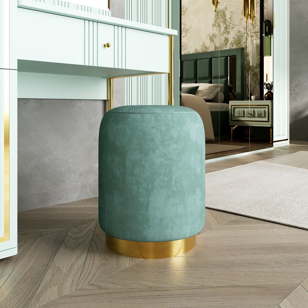 К спальне Замира предлагается мягкий велюровой пуф на латунном цоколе, мягкая мебель — диван и кресло коллекции Lara или Мокко идеально дополнят композицию