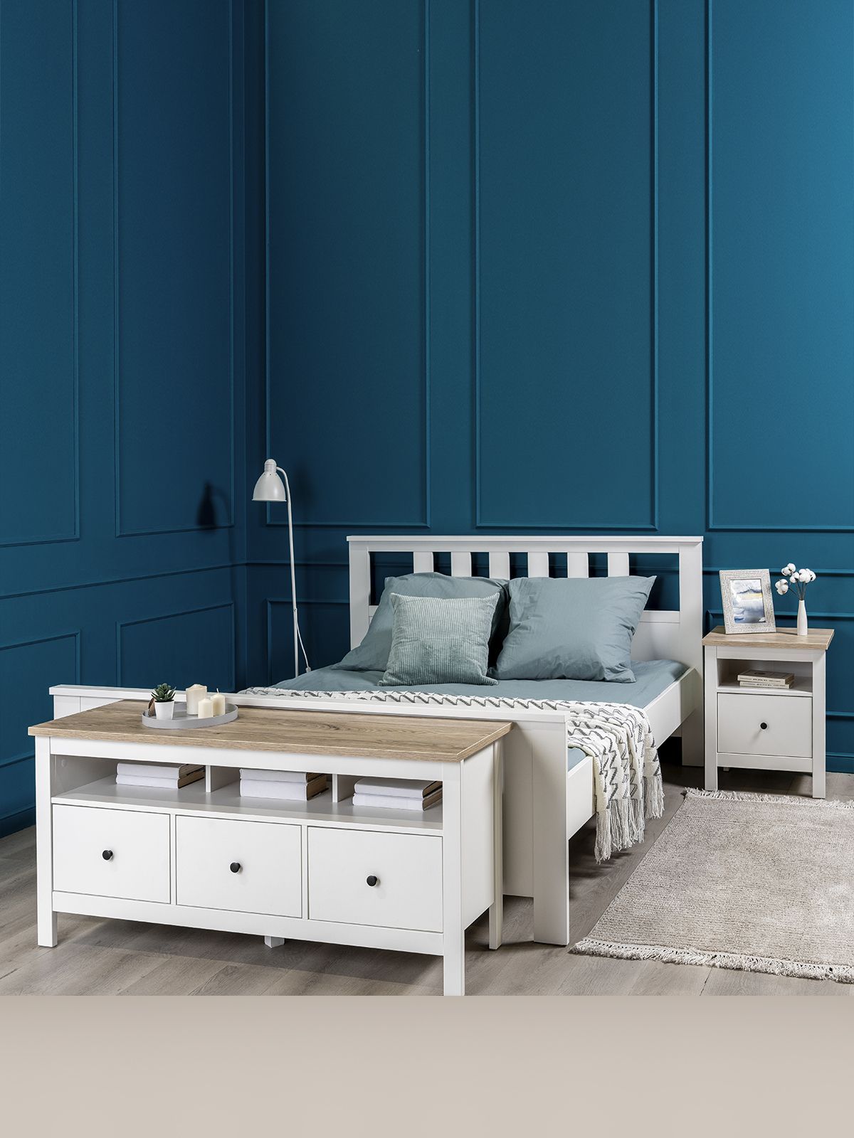 ГУД ЛАКК - знакомая мебель, которую легко купить и собрать! САГА кровать двойная 160х200 — дизайн и функциональность в каждой детали! Серия мебели САГА вдохновлена популярной серией HEMNES в традиционном стиле от IKEA, и станет идеальным дополнением вашей квартиры. Почему выбирают САГА кровать двойная 160х200? Двуспальная кровать САГА — это универсальное и изысканное решение, которое сочетает в себе элегантный дизайн и высокую функциональность. Она оснащена ортопедическим реечным дном, обеспечивающим оптимальную поддержку позвоночника во время сна, что способствует здоровому и комфортному отдыху. Каждое спальное место способно выдерживать нагрузку до 140 килограммов! Реечное дно надежно держится на стальной перекладине, а опорные элементы изготовлены из прочного МДФ, что делает конструкцию устойчивой и износостойкой. Благодаря этому, вы можете быть уверены в прочности кровати и ее способности служить долгие годы. Серия САГА представлена в шести вариантах цветового исполнения, что позволяет легко подобрать модель под любой интерьер и учесть индивидуальные предпочтения. Кровать выполнена в классическом стиле, который гармонично вписывается в разнообразные дизайнерские решения. Опорные элементы изготовлены из прочного МДФ, что обеспечивает устойчивость и надежность конструкции на долгие годы. САГА — это идеальное сочетание комфорта, прочности и эстетики, которое превратит ваш сон в настоящее удовольствие. Она станет не только функциональным, но и стильным элементом вашей спальни., подчеркивающим ваш вкус и заботу о здоровье.