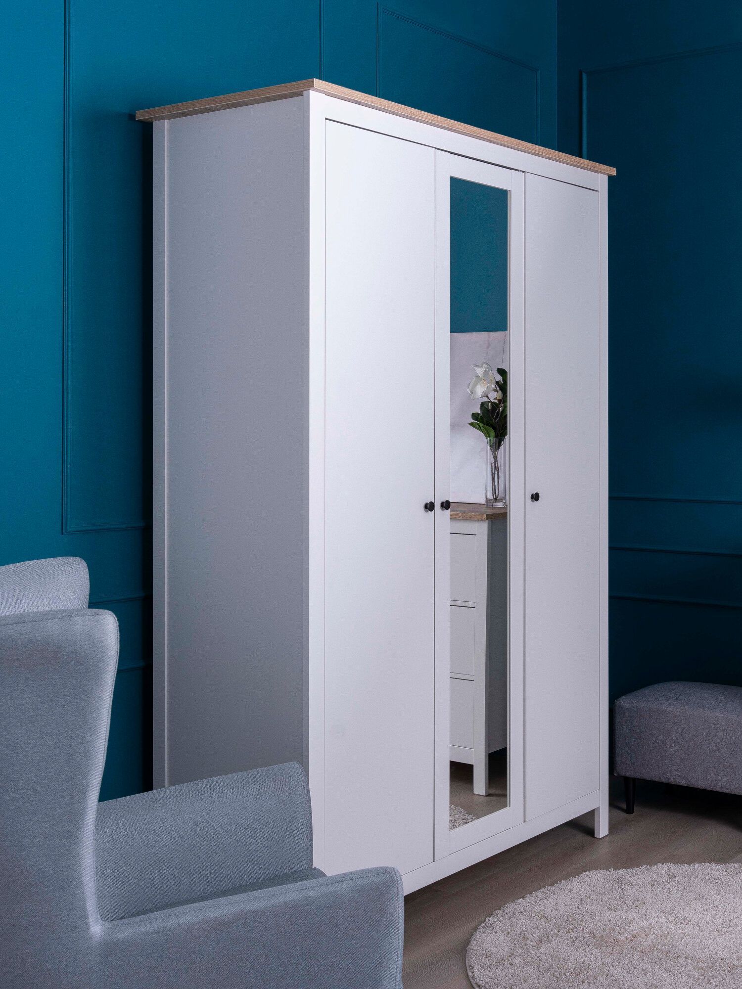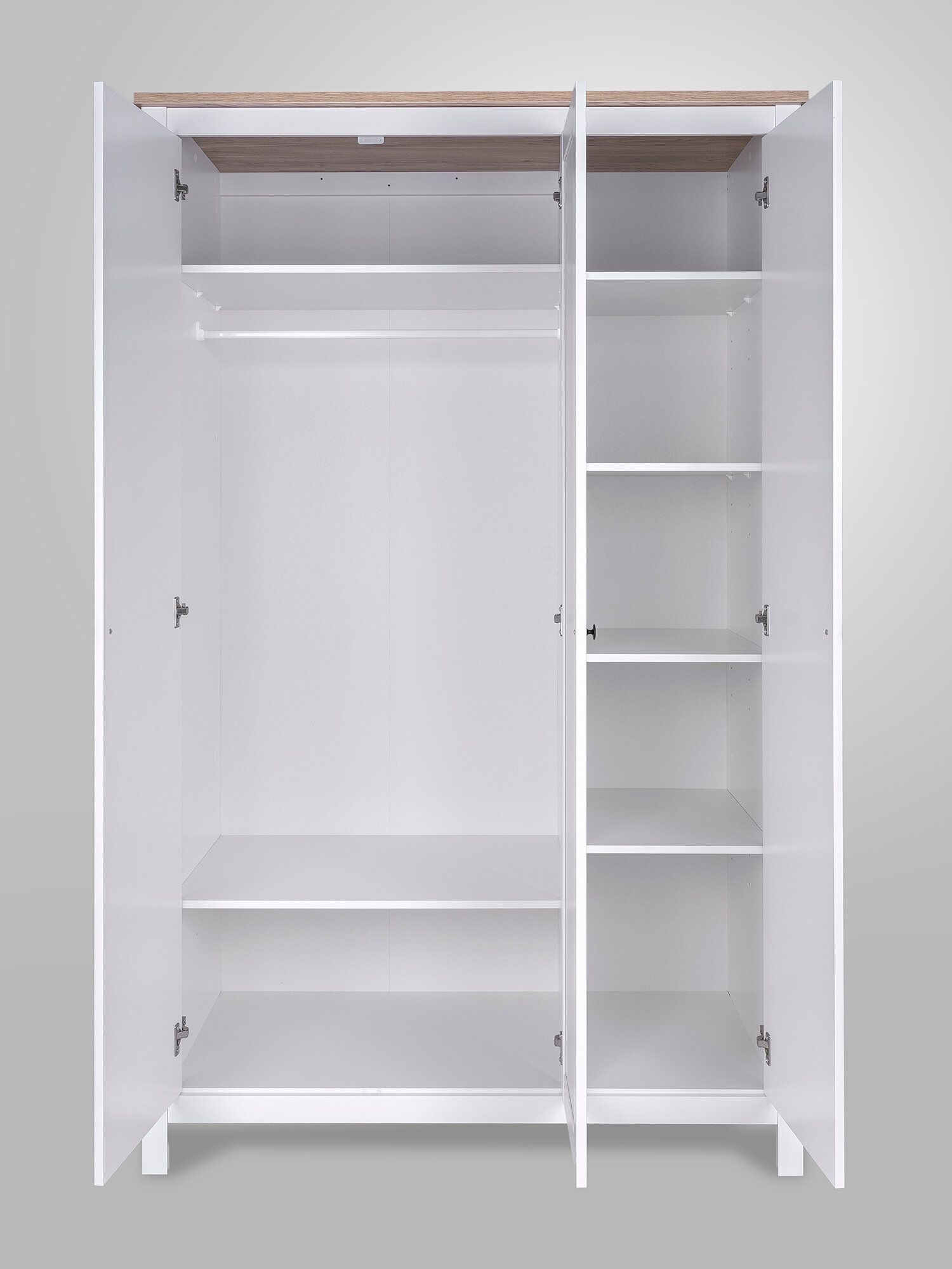 Шкаф распашной Сага, 3 двери, 132х64х215 см, белый/ясень