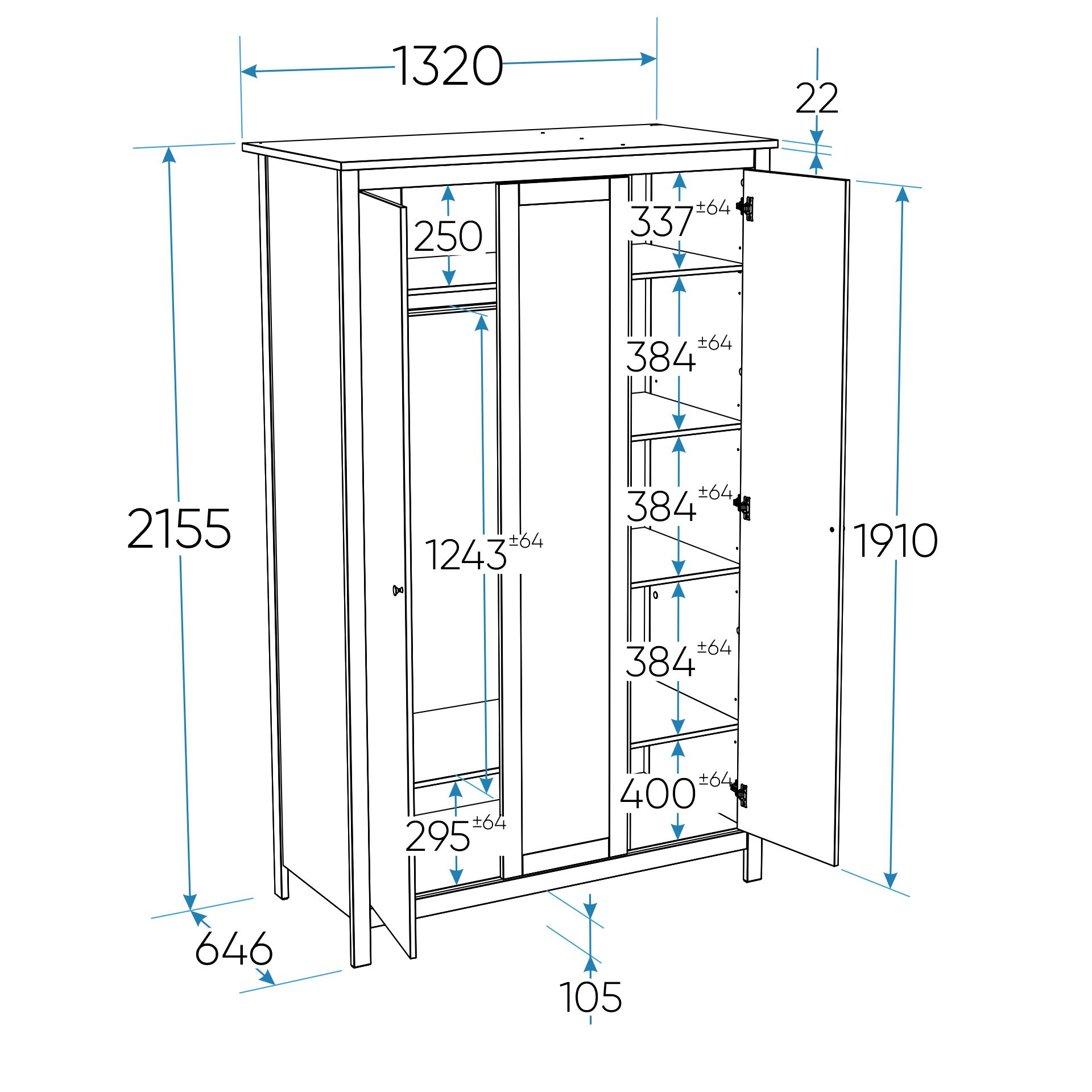 ГУД ЛАКК - знакомая мебель, которую легко купить и собрать! Шкаф распашной САГА 3 двери — дизайн и функциональность в каждой детали! Серия мебели САГА вдохновлена популярной серией HEMNES в традиционном стиле от IKEA, и станет идеальным дополнением вашей квартиры. Почему выбирают Шкаф распашной САГА 3 двери? Шкаф САГА — это функциональное и стильное решение для хранения вещей. Он оснащен шестью регулируемыми полками, что позволяет гибко организовать пространство внутри шкафа в зависимости от ваших потребностей. Для удобного размещения одежды на плечиках предусмотрена платяная штанга. Одна из дверей шкафа выполнена с зеркальной поверхностью, что добавляет ему практичности и визуально расширяет пространство. Все двери шкафа САГА снабжены доводчиками. Шкаф САГА идеально подойдет для спальни, прихожей или гардеробной, сочетая в себе удобство, эргономичность и современный дизайн. Все части шкафа, подверженные наибольшей нагрузке, изготовлены из прочного МДФ, что гарантирует устойчивость и долговечность даже при активном использовании. Шкаф САГА отличается лаконичным и стильным дизайном, который легко впишется в любой интерьер — от классического до современного. Она станет не только функциональным элементом, но и изысканным украшением вашей спальни. Шкаф стоит на стильных ножках, которые добавляют ему легкости и визуальной воздушности. Это также облегчает уборку под ним, поддерживая чистоту в комнате. Шкаф — это идеальное сочетание функциональности, стиля и удобства. Она поможет организовать пространство, обеспечит комфортное хранение вещей и создаст уютную атмосферу в вашем доме. Дополните свой интерьер этой тумбой и наслаждайтесь порядком и эстетикой!