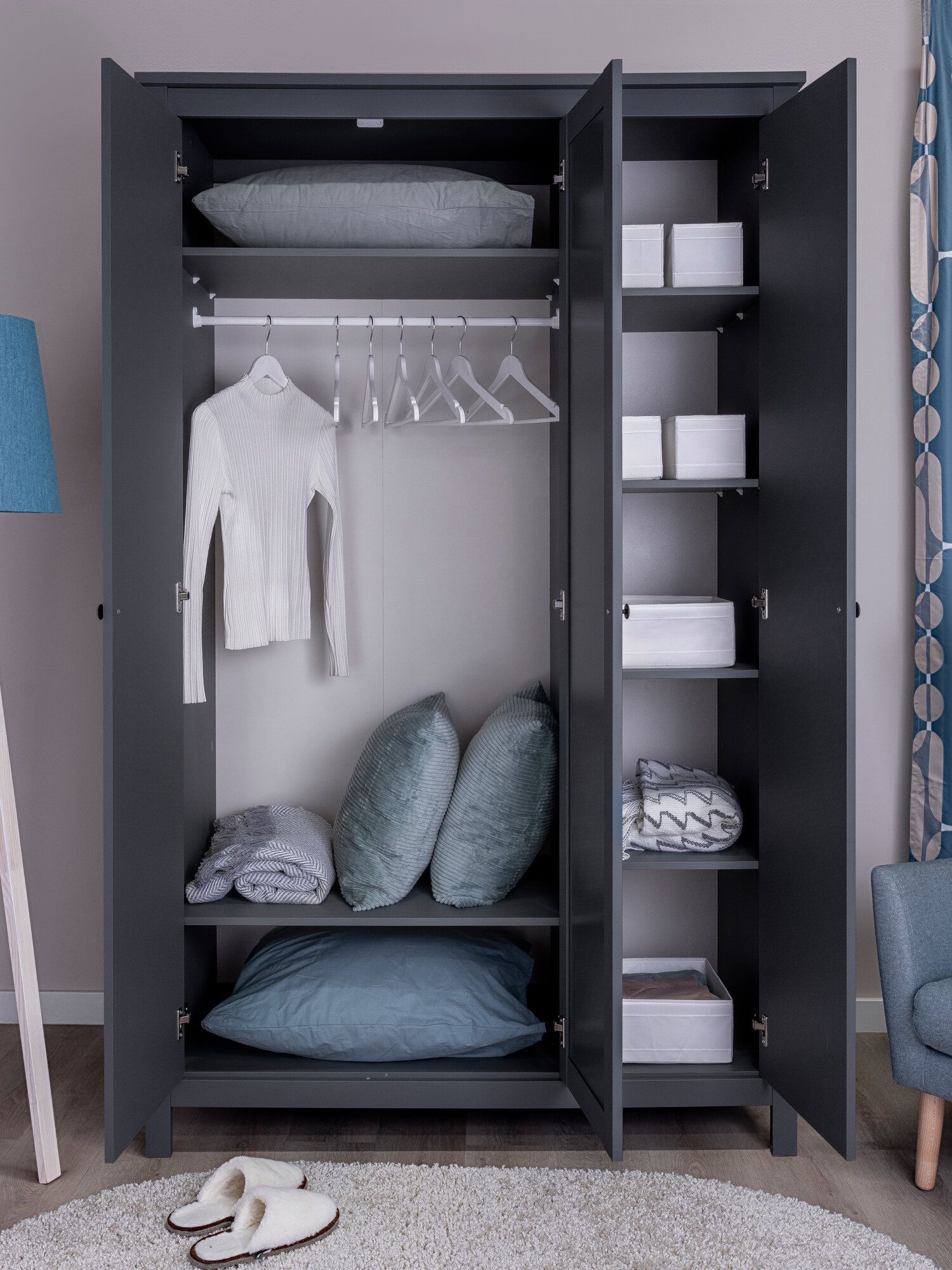 Шкаф распашной Сага, 3 двери, 132х64х215 см, серый