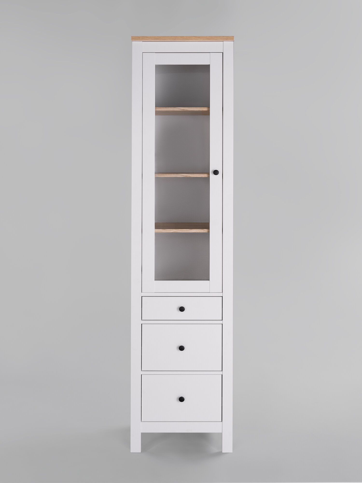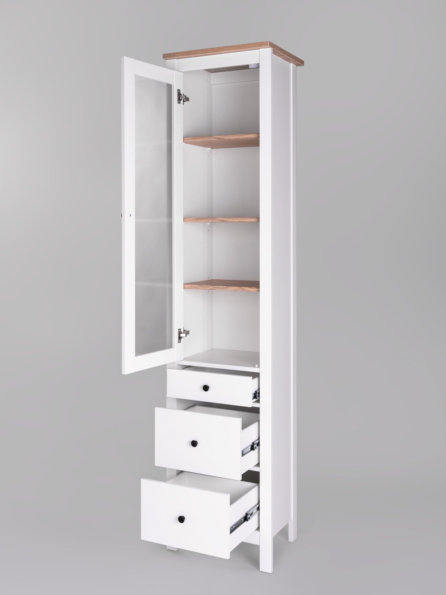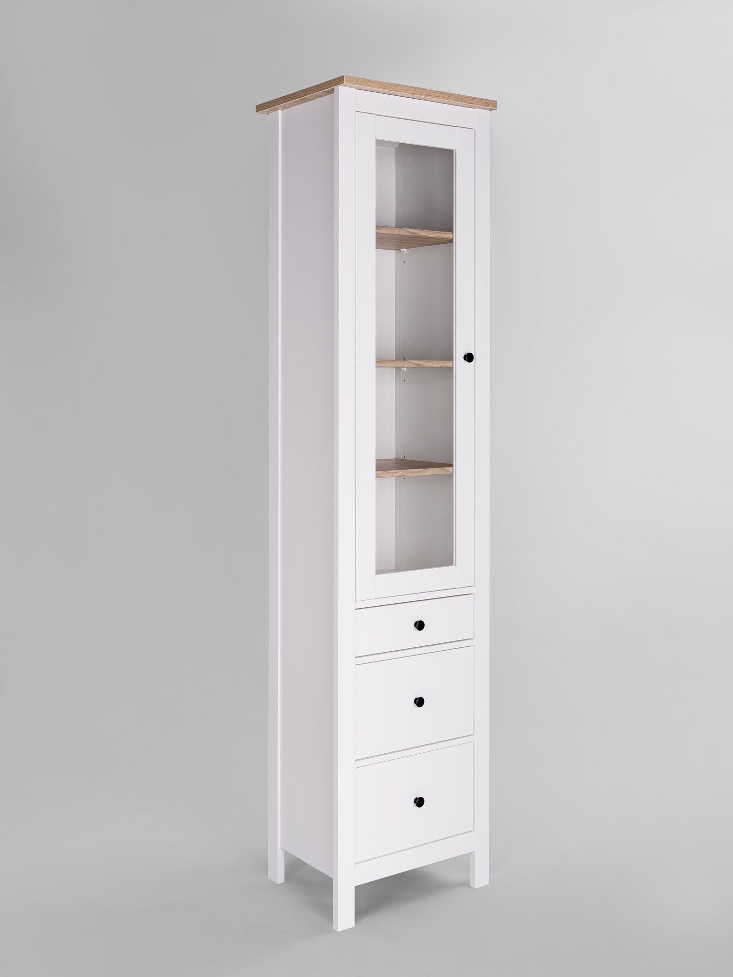 ГУД ЛАКК - знакомая мебель, которую легко купить и собрать! Шкаф с витриной САГА — это элегантное и практичное решение для вашей столовой или гостиной. Шкаф выполнен из высококачественного ДСП, который отвечает всем требованиям безопасности и экологичности (класс экобезопасности Е0,5). Шкаф имеет компактные размеры 90х41х215 см, что позволяет ему гармонично вписаться в любой интерьер. Внутри шкафа расположены три полки и три разноразмерных ящика, которые предоставляют достаточно места для хранения посуды и других предметов. Дверца шкафа выполнена со стеклом, что придает ему изысканный вид и позволяет демонстрировать содержимое шкафа. Этот шкаф идеально подойдёт для столовой или гостиной и станет прекрасным дополнением к вашему интерьеру. Он поможет организовать пространство и создаст уютную атмосферу в вашем доме.