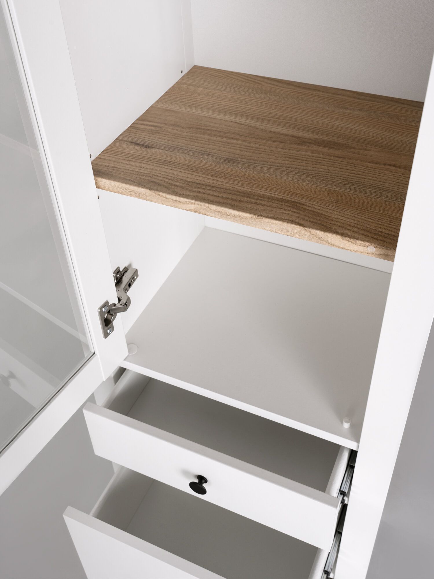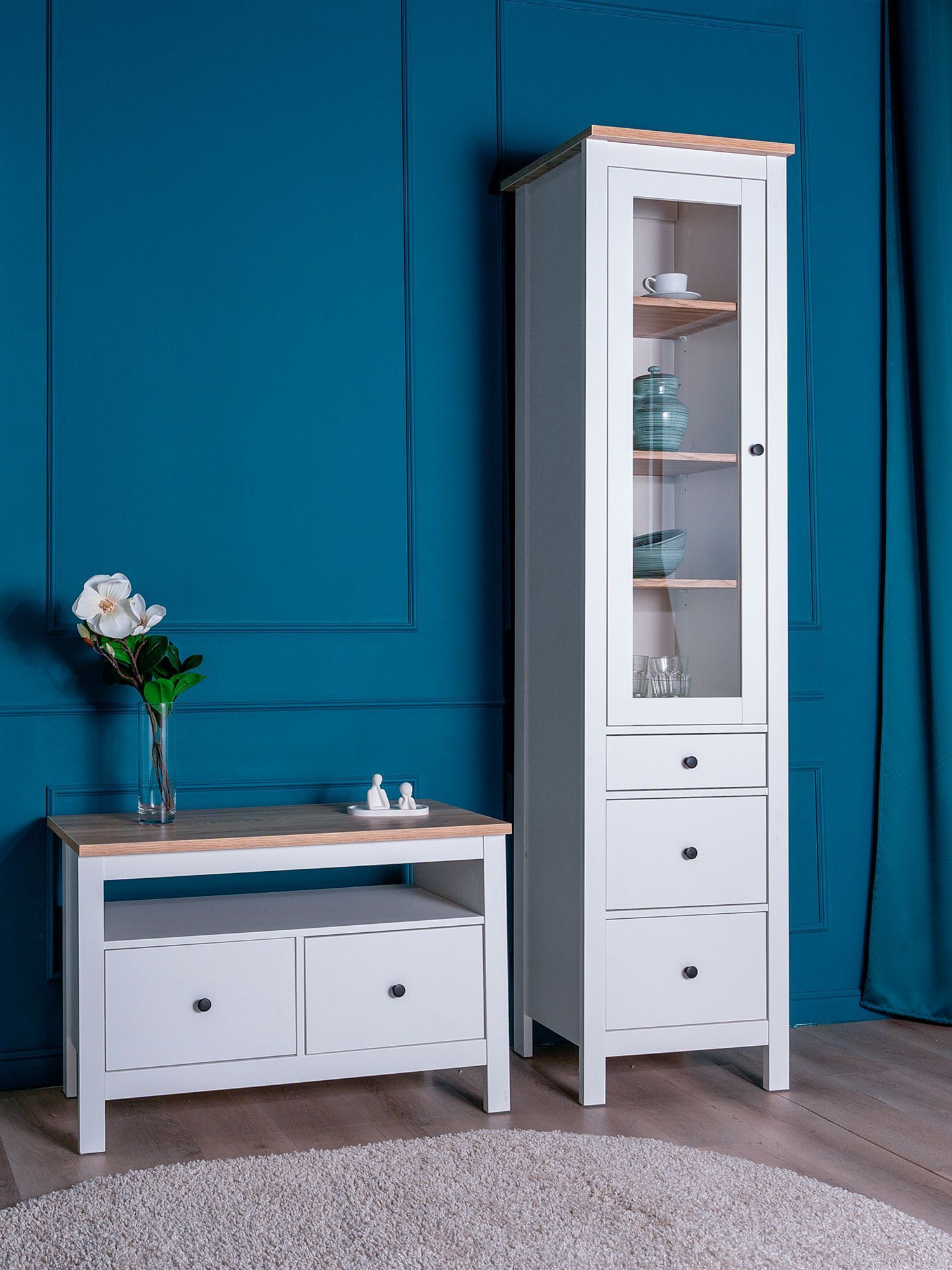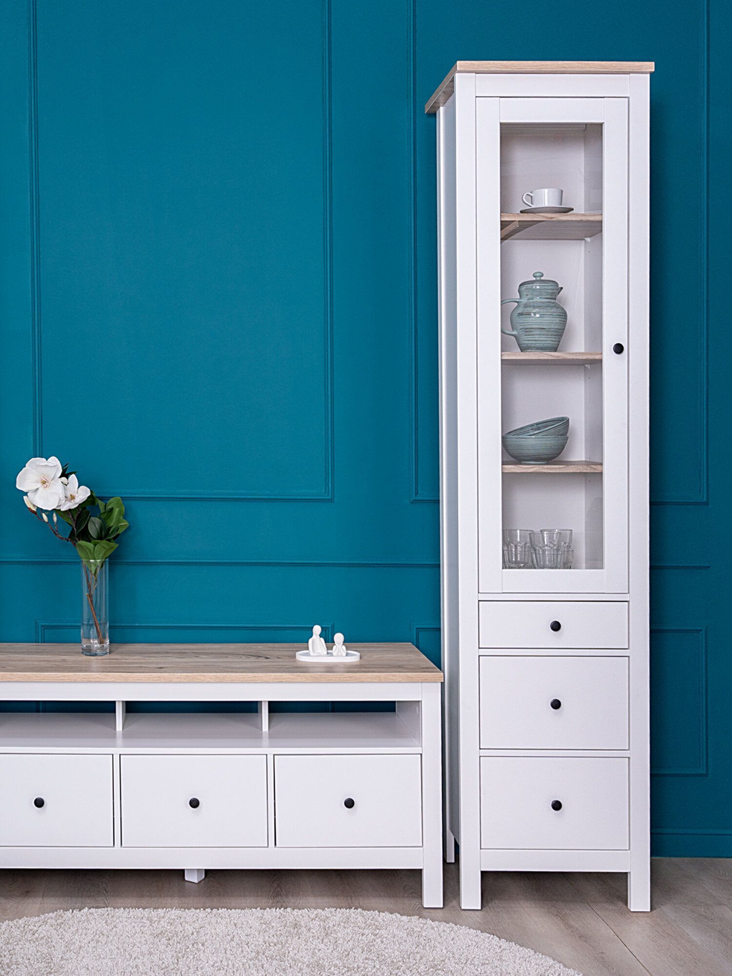 ГУД ЛАКК - знакомая мебель, которую легко купить и собрать! Шкаф с витриной САГА — это элегантное и практичное решение для вашей столовой или гостиной. Шкаф выполнен из высококачественного ДСП, который отвечает всем требованиям безопасности и экологичности (класс экобезопасности Е0,5). Шкаф имеет компактные размеры 90х41х215 см, что позволяет ему гармонично вписаться в любой интерьер. Внутри шкафа расположены три полки и три разноразмерных ящика, которые предоставляют достаточно места для хранения посуды и других предметов. Дверца шкафа выполнена со стеклом, что придает ему изысканный вид и позволяет демонстрировать содержимое шкафа. Этот шкаф идеально подойдёт для столовой или гостиной и станет прекрасным дополнением к вашему интерьеру. Он поможет организовать пространство и создаст уютную атмосферу в вашем доме.