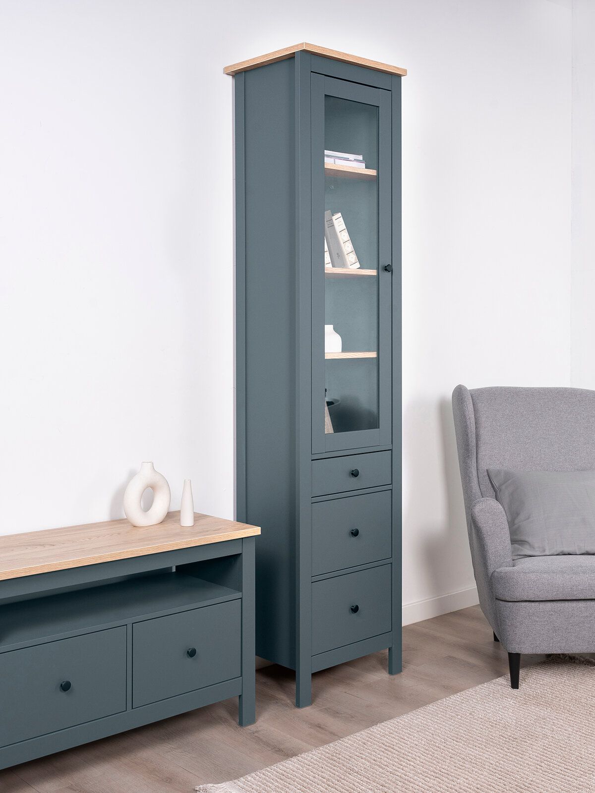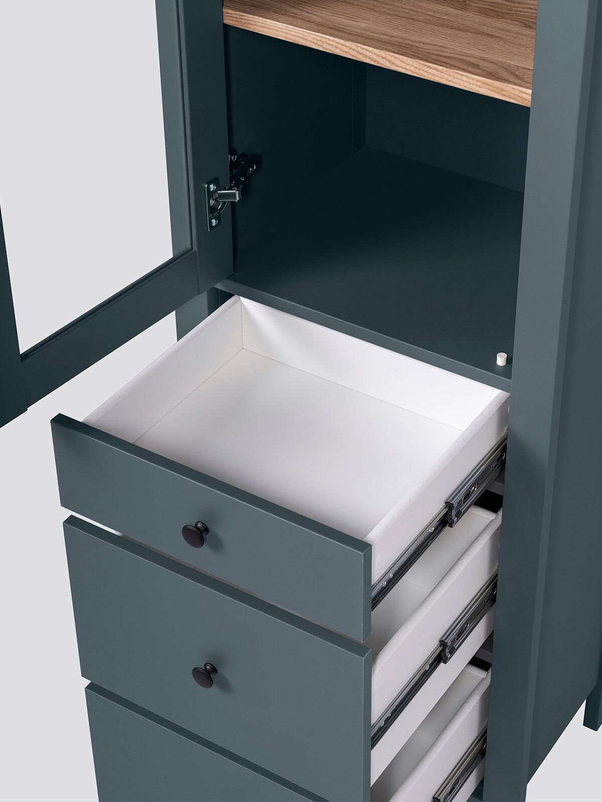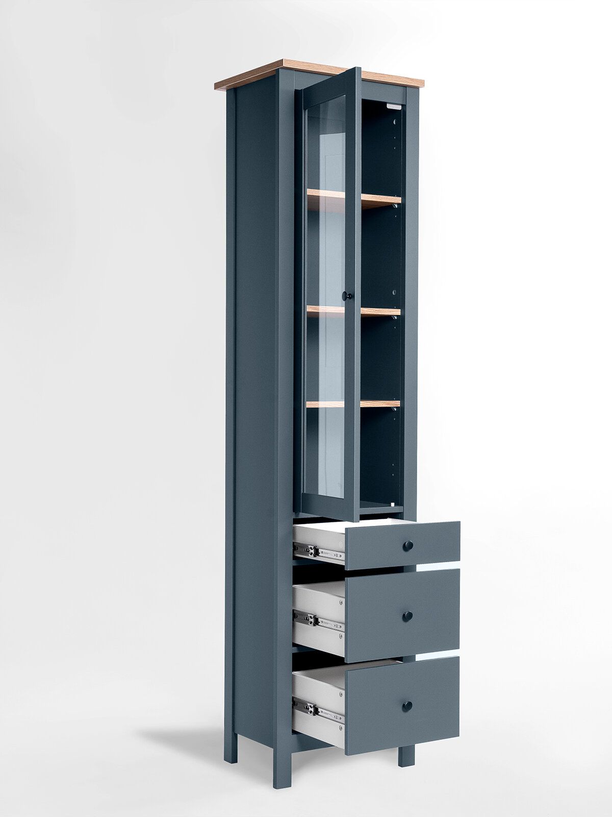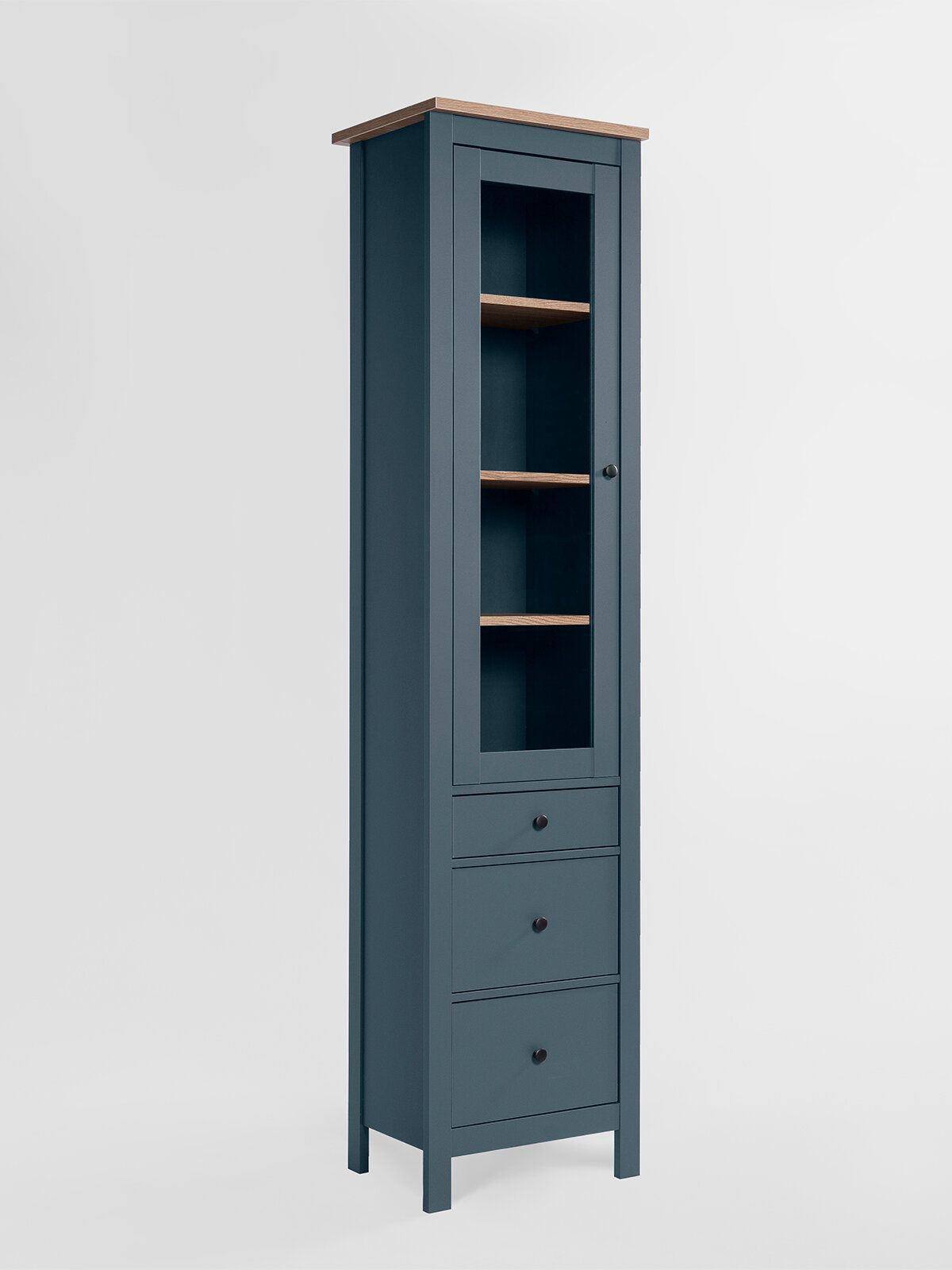 САГА шкаф с витриной 50? Шкаф с витриной САГА — это элегантное и функциональное решение для хранения, которое идеально сочетает в себе стиль, практичность и продуманный дизайн. Стеллаж оснащен тремя вместительными полками, регулирующимися по высоте, что позволяет гибко организовать пространство для хранения книг, посуды, декоративных элементов, фоторамок или других вещей. Дополнительно стеллаж оборудован тремя выдвижными ящиками, которые идеально подходят для хранения тех предметов, которые вы предпочитаете держать вне поля зрения. Ящики оснащены доводчиками и направляющими полного выдвижения, обеспечивающими плавное и бесшумное открывание, а также максимальное удобство в использовании. Благодаря такой продуманной конструкции, вы сможете легко адаптировать стеллаж под свои нужды и поддерживать порядок в доме.