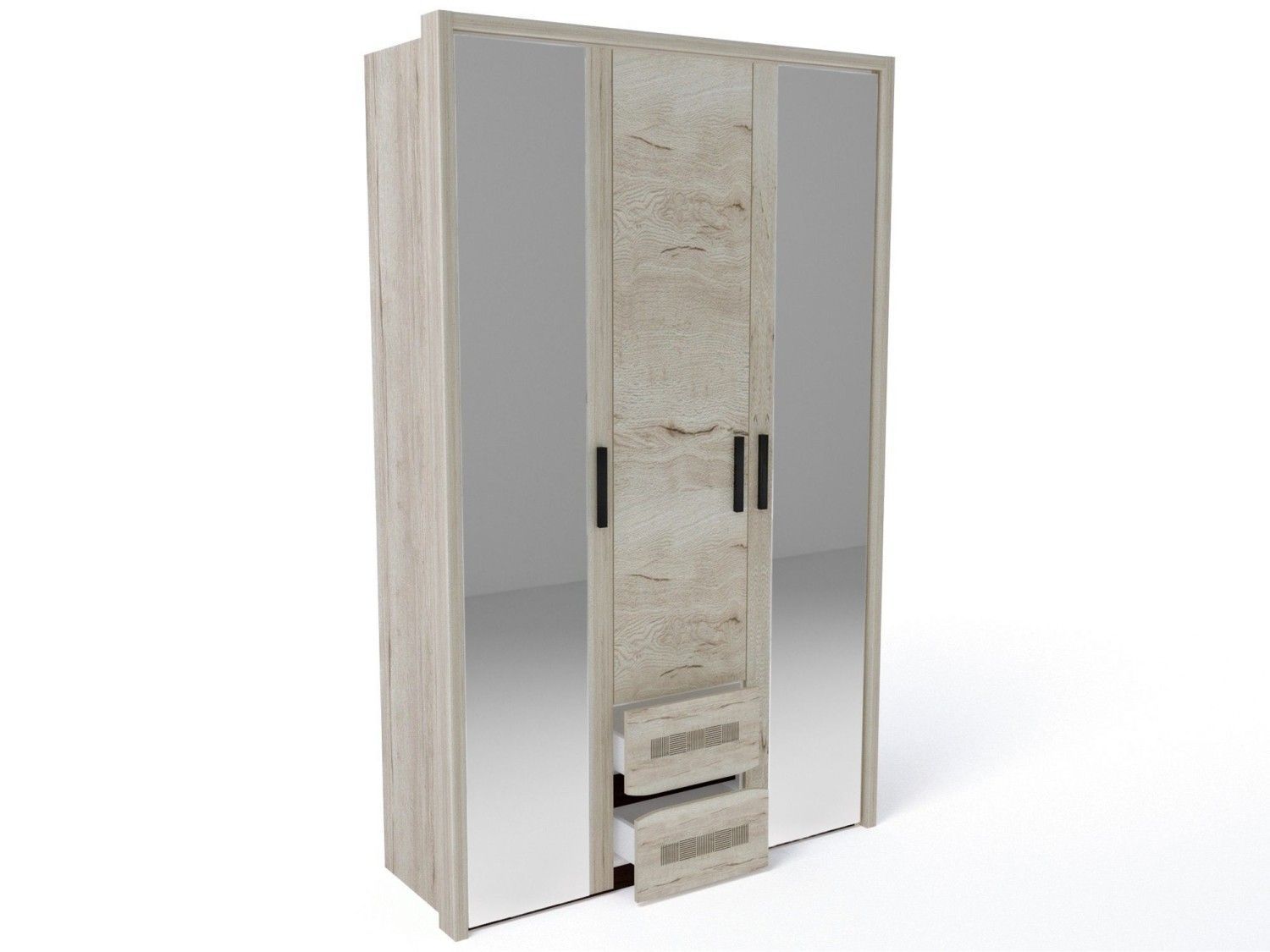 Шкаф 3-х дверный с декоративным обкладом, Мале (1442*544*2316) Дуб галифакс белый