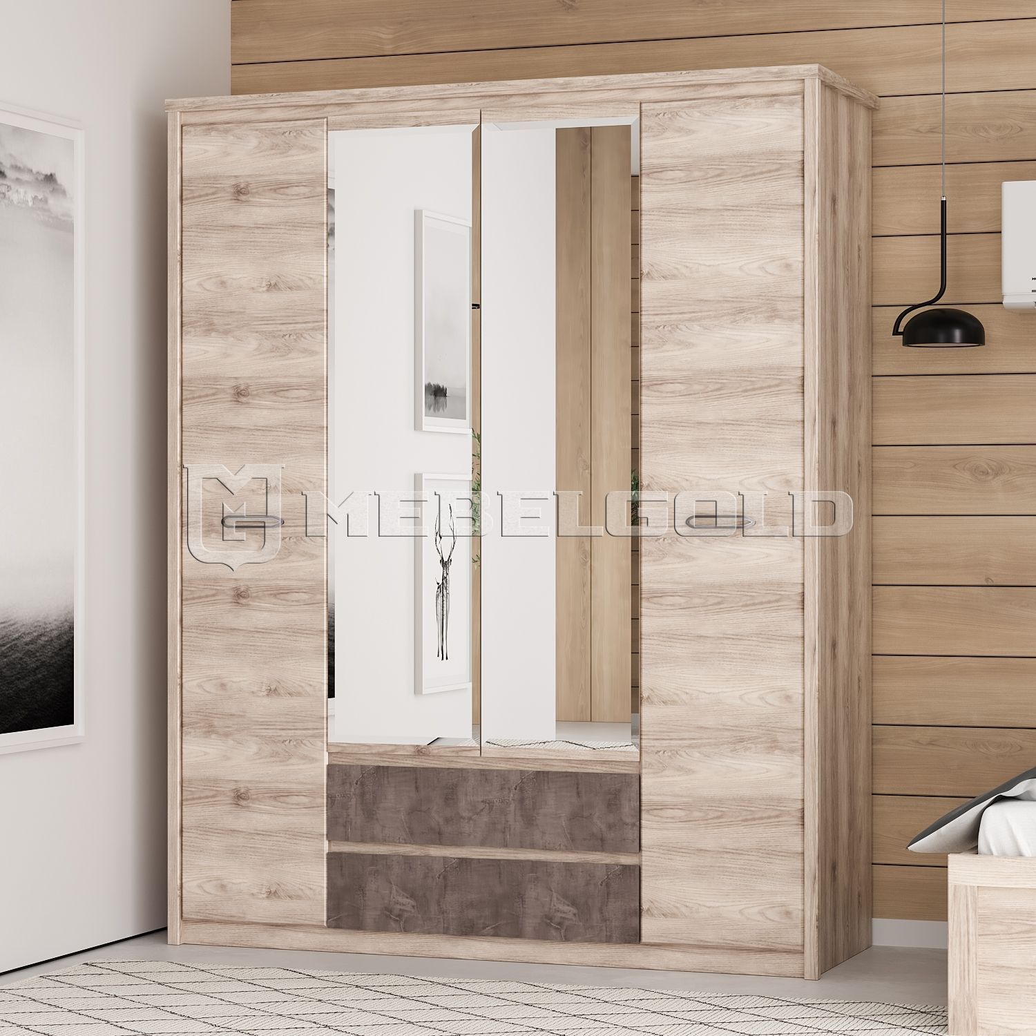 Четырехстворчатый комбинированный шкаф JAZZ с зеркалом – это оригинальная модель 4DG2S Z белорусского бренда Anrex. Созданная в заводских условиях, она представляет баланс эстетики, надежности и рационального наполнения. В них полки рассчитаны на стандартную нагрузку, крепления надежны и долговечны, а угол открывания двери составляет чуть более 90°.