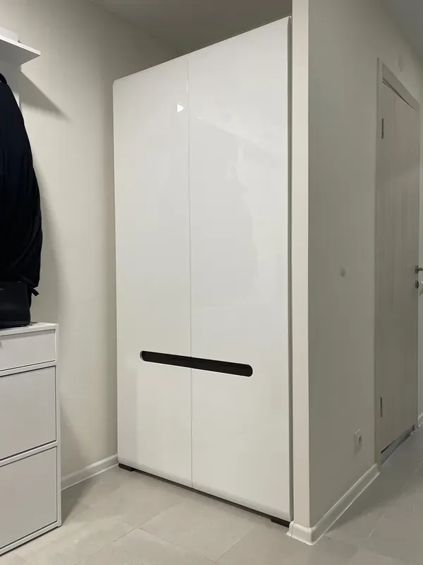 Красивый белоснежный шкаф с глянцевой поверхностью и удобными прорезными ручками. Дверцы снабжены доводчиками, поэтому можно не бояться, что ребенок случайно прищемит палец. Компактная вместительная модель за хорошую цену. Рекомендую.