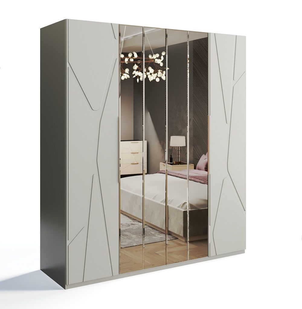 Завершают коллекцию вместительные шкафы "Лейла" которые представлены в 2х размерах — 4х и 6ти дверный. Складной механизм фасадов экономит место, плавная эргономичная форма ручки рейлинга позволяет удобно пользоваться шкафом, стандартное внутреннее наполнение с 2мя функциональными комодами, полками и штангой сохранят ваши вещи в порядке .