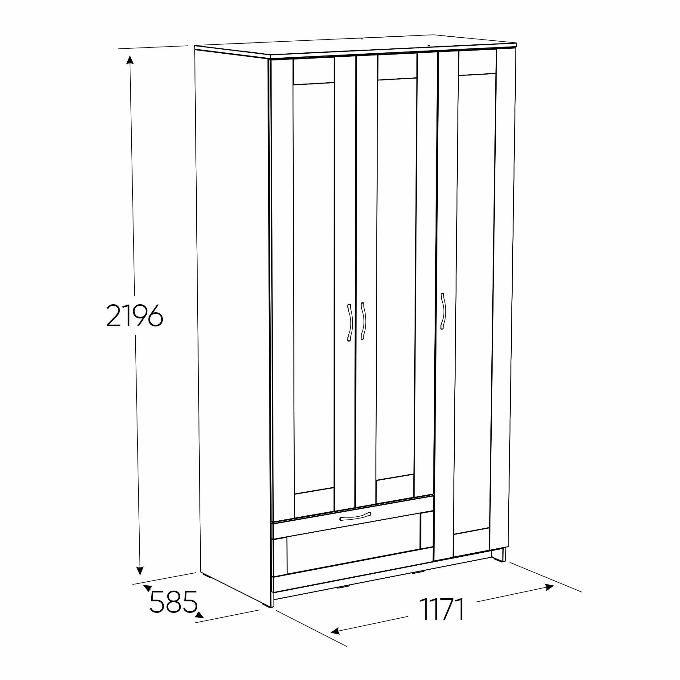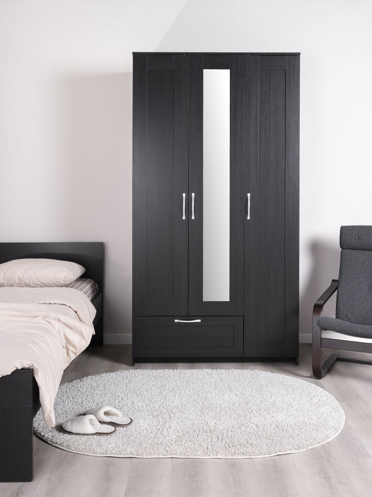 ГУД ЛАКК - знакомая мебель, которую легко купить и собрать! СИРИУС шкаф комбинированный 3 двери и 1 ящик с зеркалом— элегантность и качество в каждой детали! Серия мебели СИРИУС вдохновлена популярной серией BRIMNES от IKEA, и станет идеальным дополнением вашей квартиры. Почему выбирают СИРИУС шкаф комбинированный 3 двери и 1 ящик с зеркалом? Этот шкаф СИРИУС с увеличенной высотой — 220 см, для максимального использования пространства! Шкаф Сириус — это стильное и функциональное решение для хранения, которое сочетает в себе практичность, элегантный дизайн и продуманную организацию пространства. Филенчатые фасады придают шкафу изысканный вид, делая его украшением любого интерьера, а зеркало позволит подобрать идеальный образ. Внутри шкафа расположена прочная платяная штанга, на которой можно разместить одежду на плечиках, сохраняя ее в идеальном состоянии. Просторное внутреннее пространство с тремя дверцами позволяет организовать хранение одежды, обуви, аксессуаров или других вещей. Внешний выдвижной ящик с удобной ручкой предназначен для хранения мелких вещей, аксессуаров или белья. Его можно использовать, не открывая дверцы шкафа, что делает доступ к вещам быстрым и удобным. Так же внутри есть 8 полок, которые можно отрегулировать по высоте для разных вещей. Шкаф имеет оптимальные размеры, что делает его подходящим для небольших помещений, таких как спальни, прихожие, гостевые комнаты или даже гардеробные. Он не занимает много места, при этом остается вместительным.
