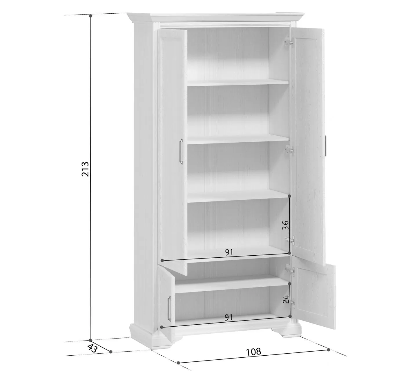 Белорусский двустворчатый шкаф Stylius – универсальное решение для любой жилой площади. Эта конструкция высотой 213 и шириной 108 см позволит использовать пространство наиболее рационально. В ее верхней части расположены две глухие дверцы, внизу установлены небольшие отделения с одной полкой внутри. Все четыре створки находятся симметрично относительно друг друга.