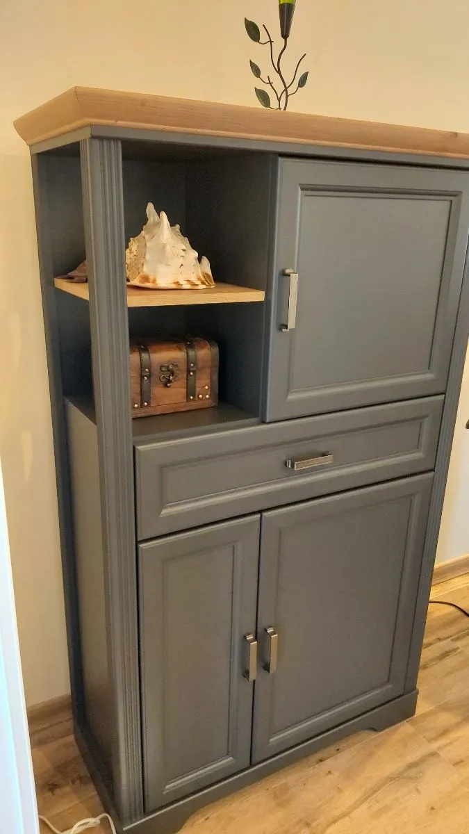 Шкаф Jasmin REG3D1S из ЛДСП класса Е1 и МДФ гарантирует безопасное пользование, а установленные петли с доводчиками – комфортную эксплуатацию. Эта модель продумана строго до мелочей. Его открытые полки идеально предназначены для хранения посуды и коллекционных вещей. За глухими дверями можно разложить домашнюю атрибутику – все то, что не должно пылиться и попадать под действие солнца.