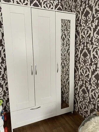 У меня уже есть комод из этой серии и качество мне нравится. Я главное хочу сказать, если у вас нет опыта в сборке шкафов, то делайте все просто по инструкции (благо она отличная). Я все делала как надо до момента прикручивания дверей и получилась огромная щель. Рабочий мой обещал отрегулировать, надеюсь получится. Но это произошло именно из-за того, что я решила сделать по-своему и прикрутить дверцы навесу. А боковую с зеркалом вешала как в инструкции написано и все вышло куда проще и быстрее. И красивее)