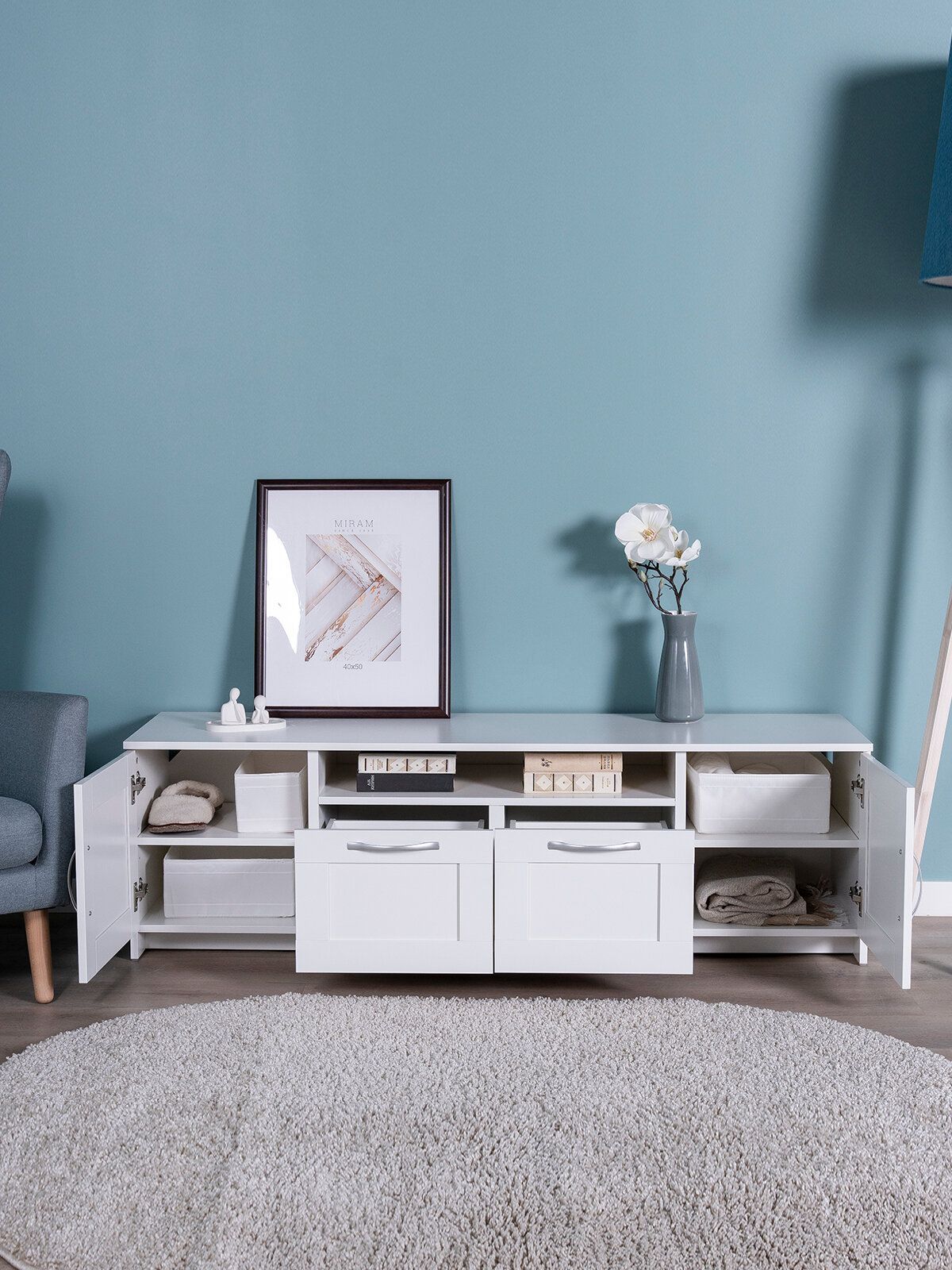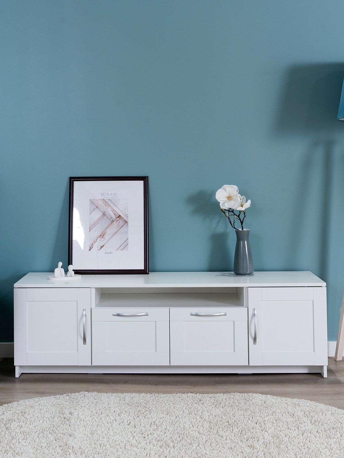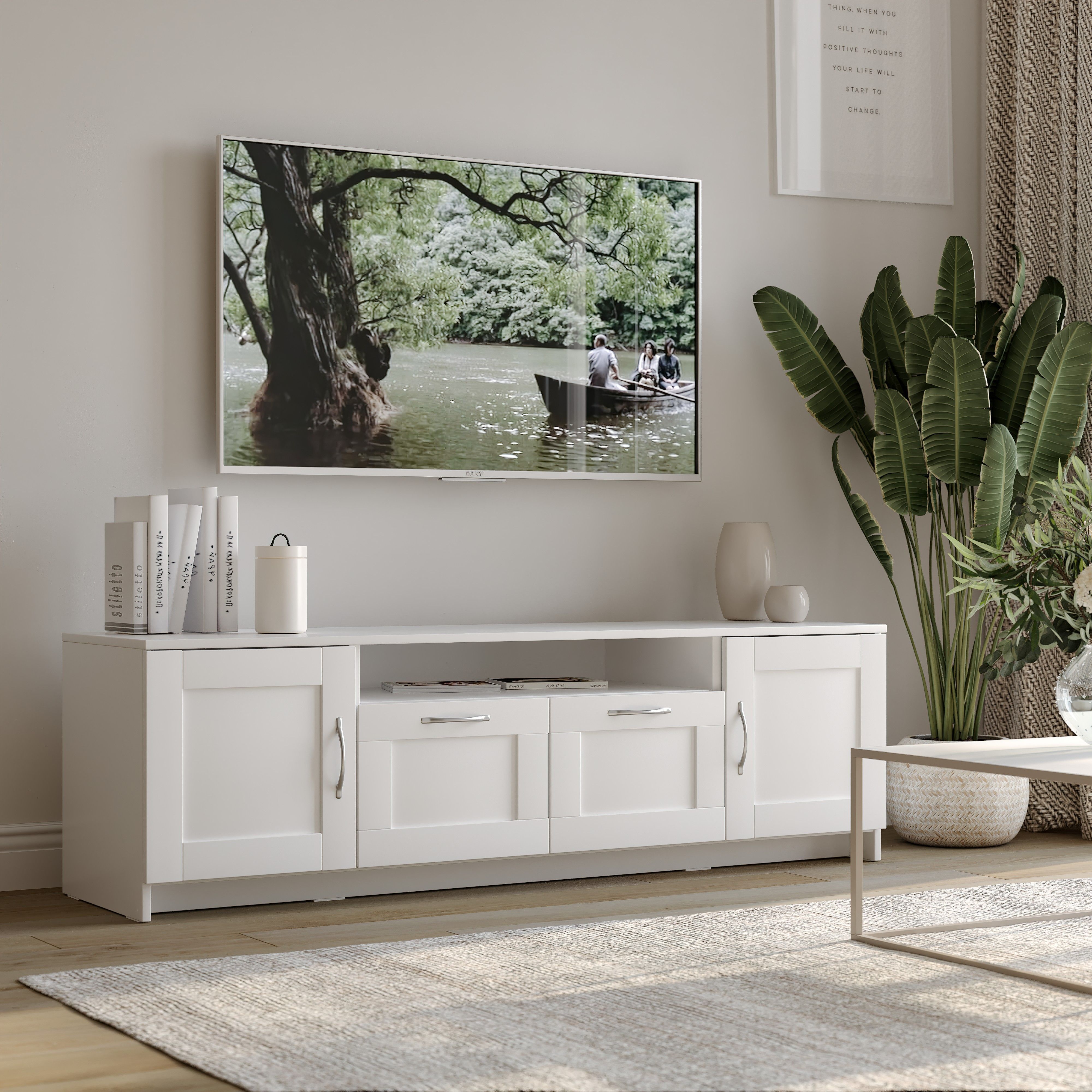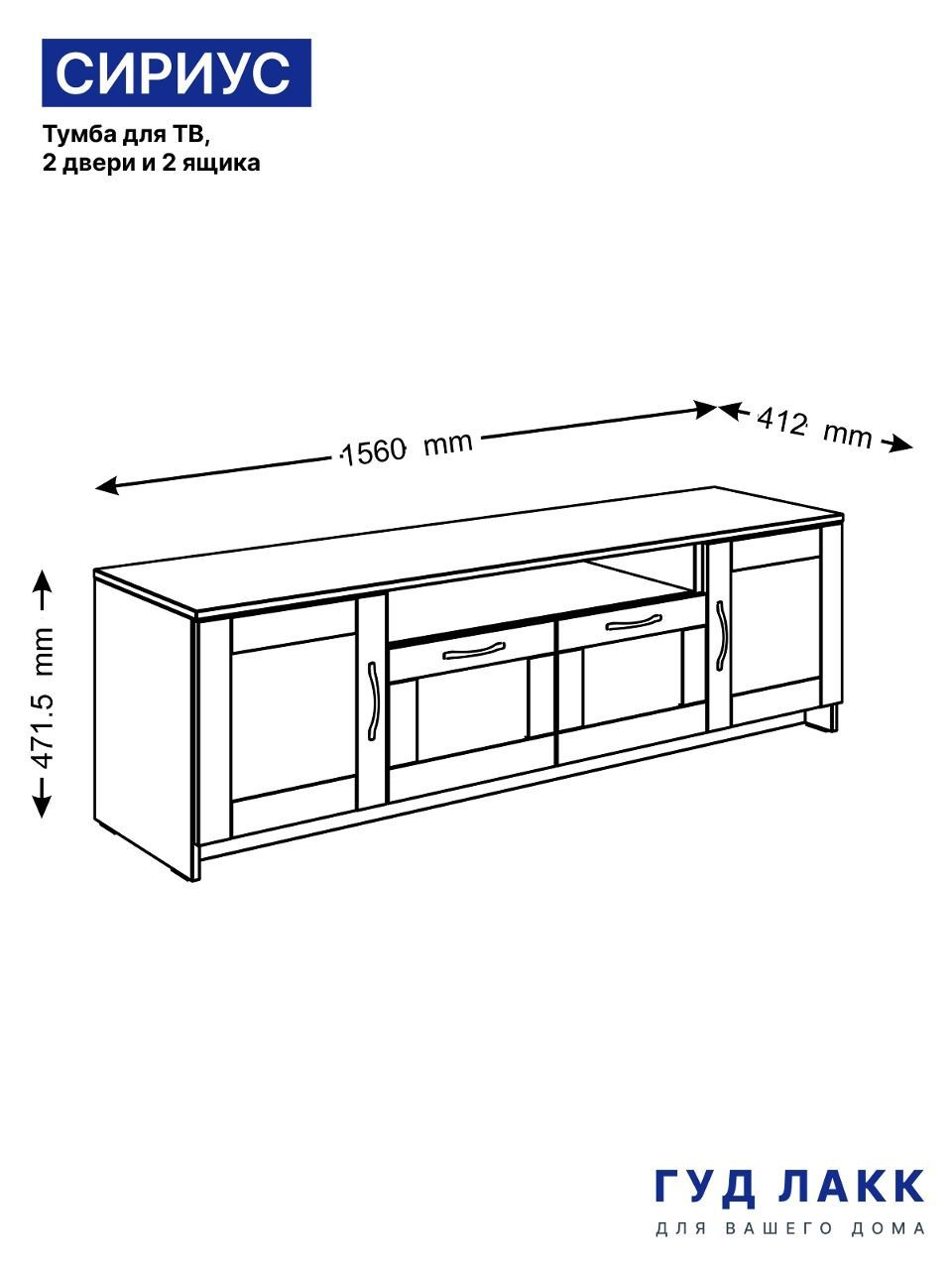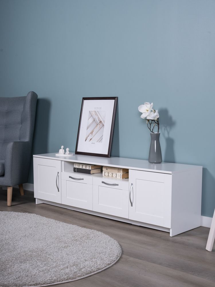 Тумба для ТВ Сириус, 2 двери и 2 ящика, 156х41х47 см, белая