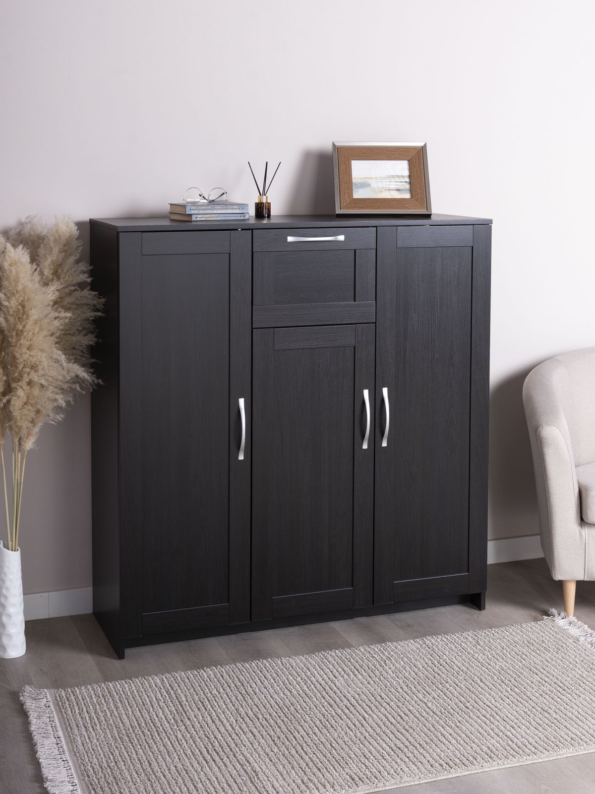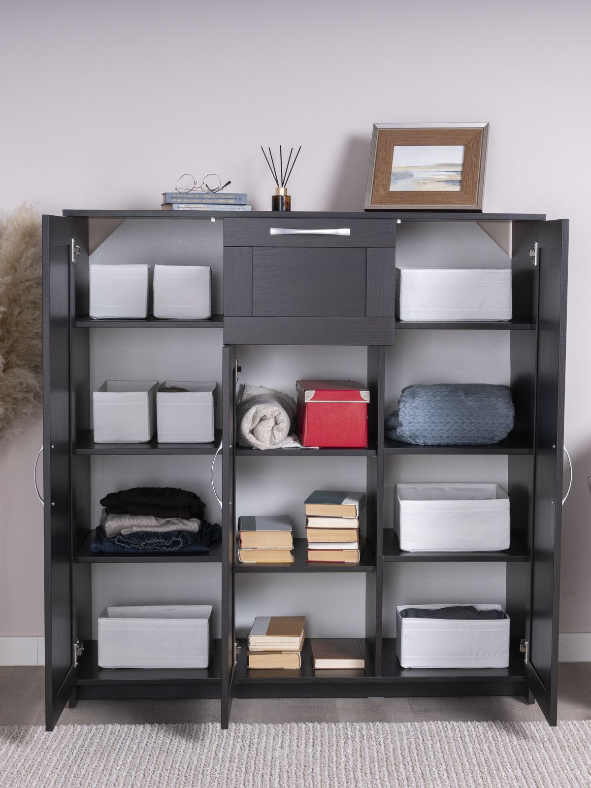 Очень вместительна, хорошо вписалась в интерьер. Мастер собрал за час.. Довольна покупкой
