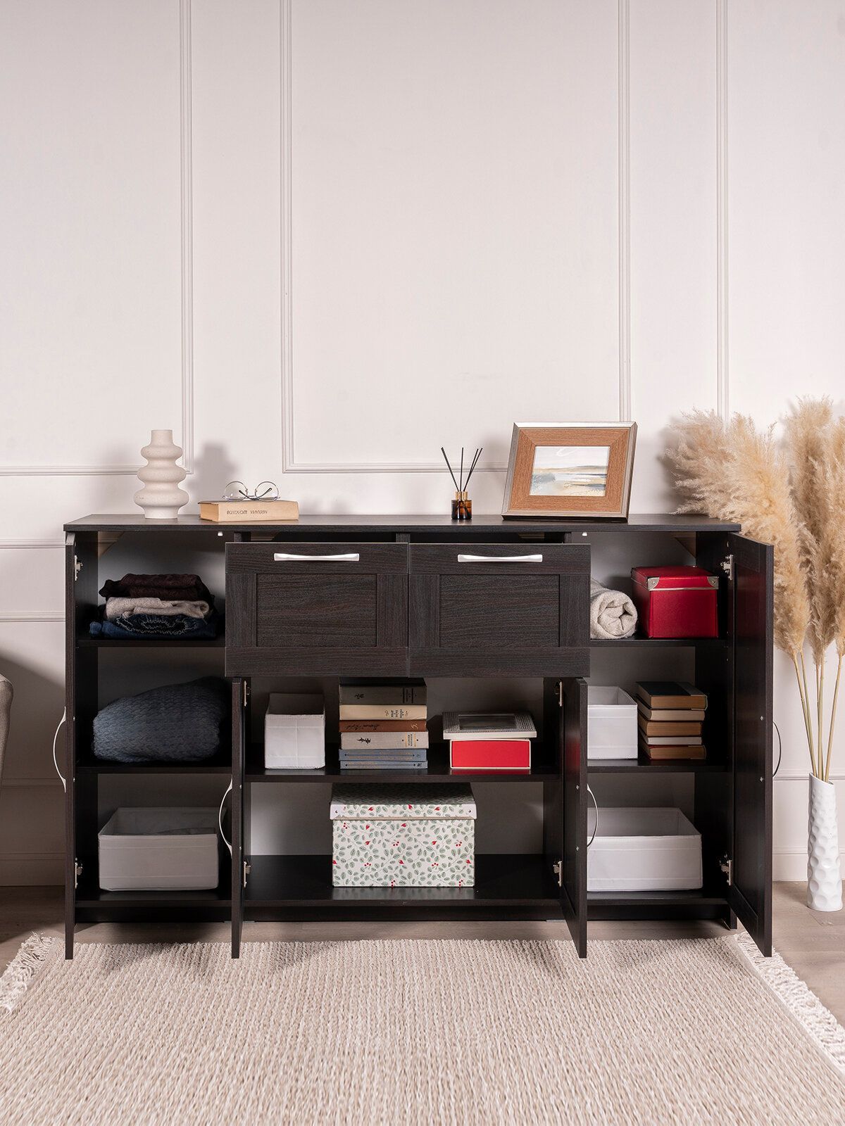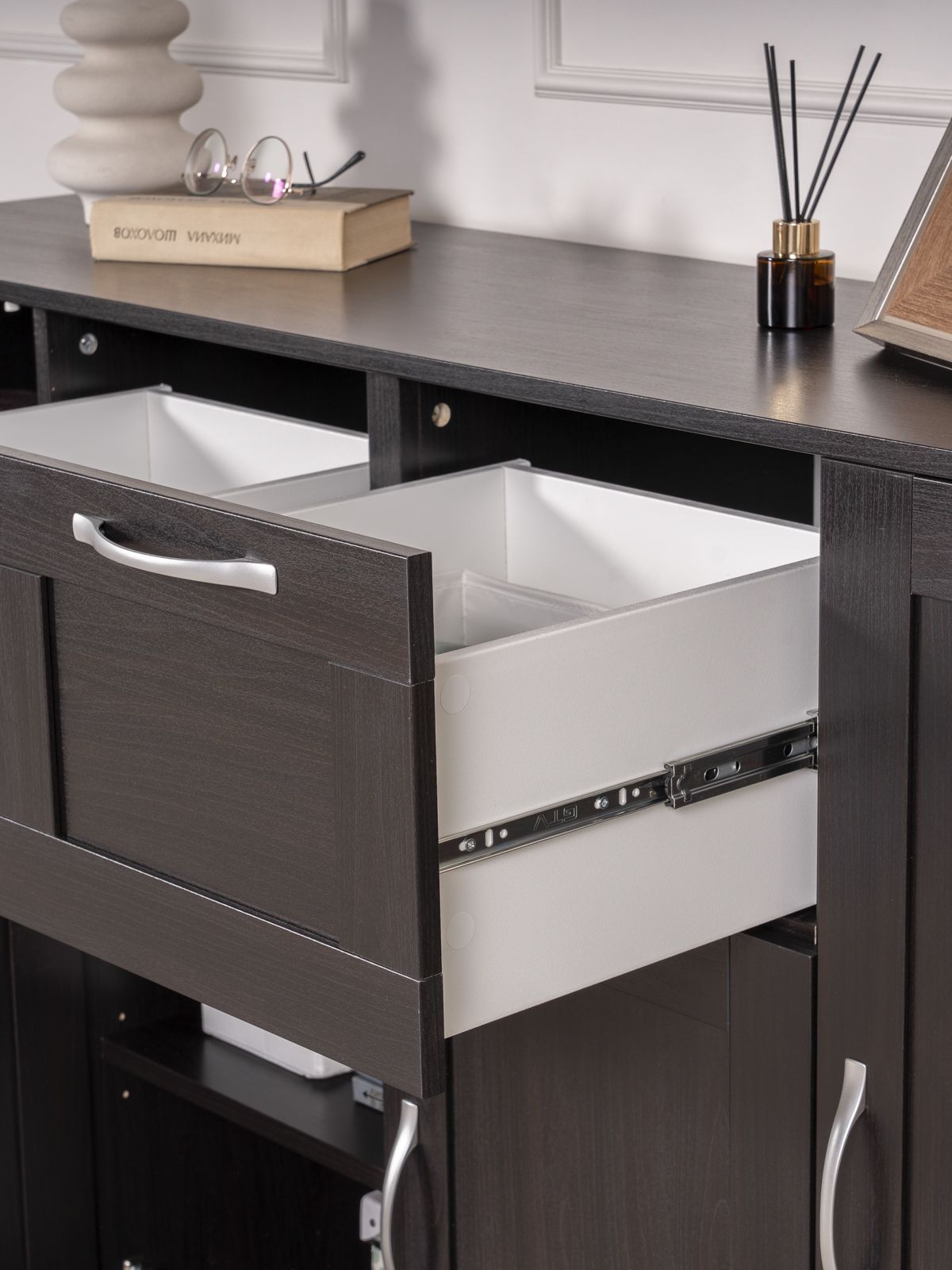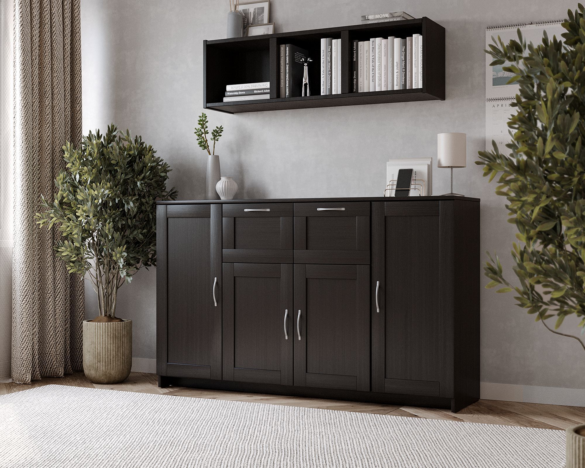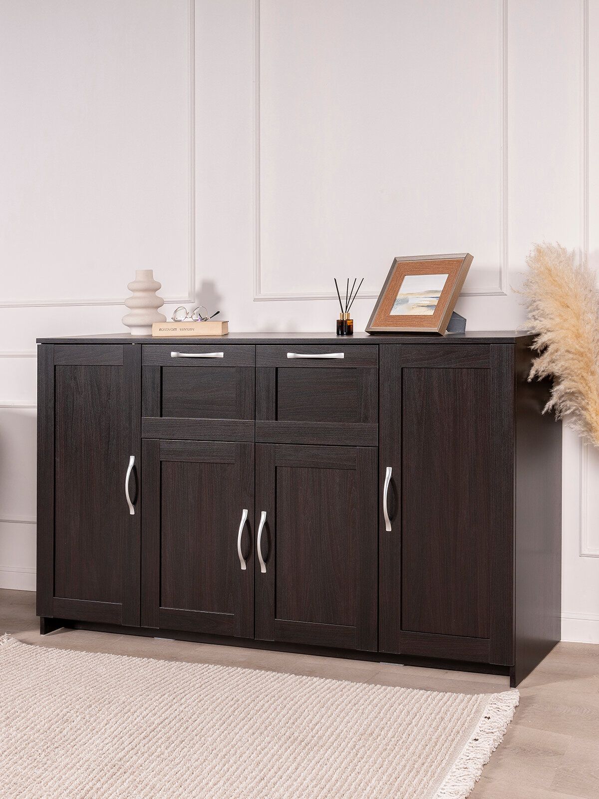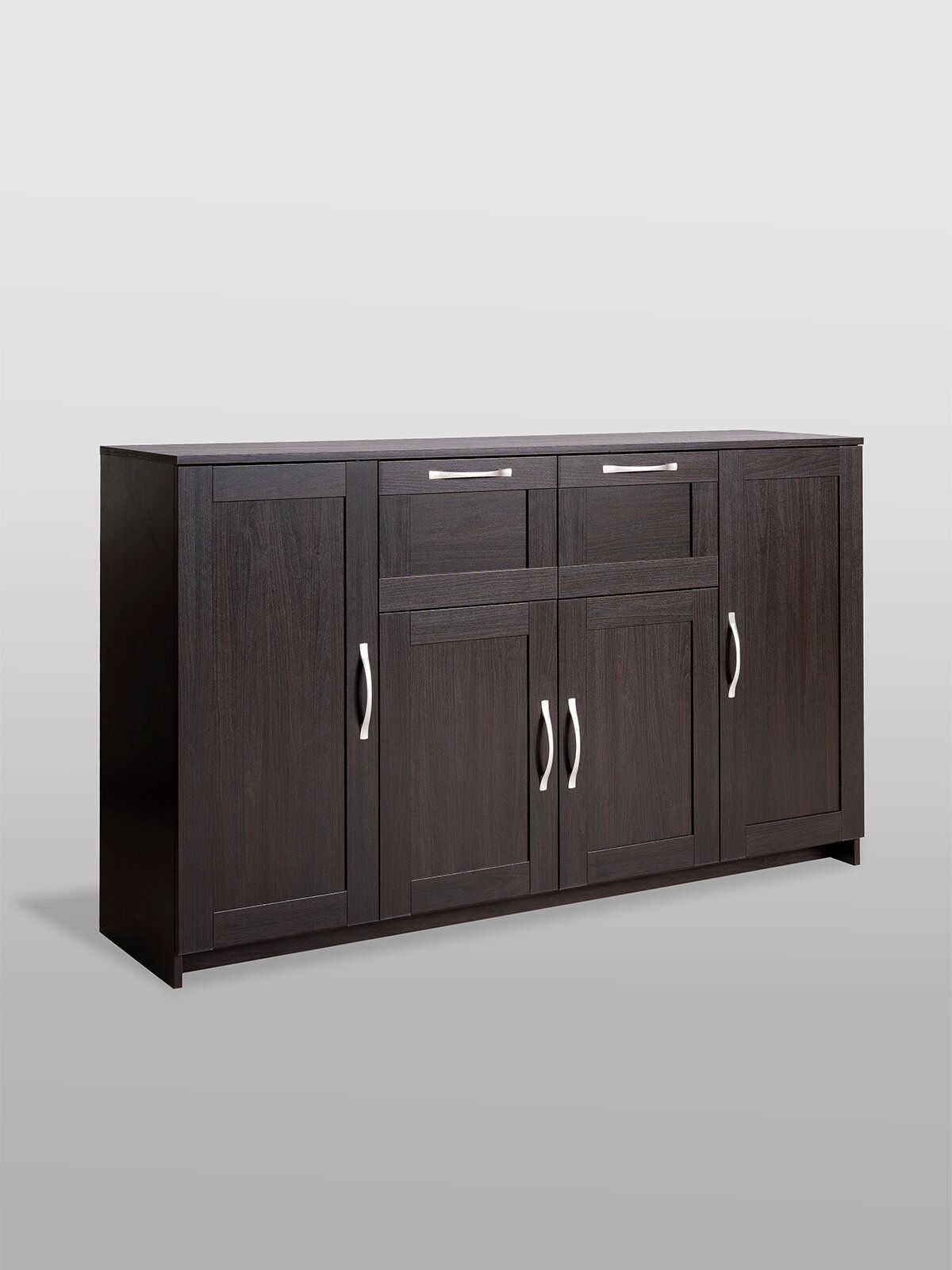 Тумба Сириус, 4 двери и 2 ящика, 156х41х95 см, дуб венге, черно-коричневая