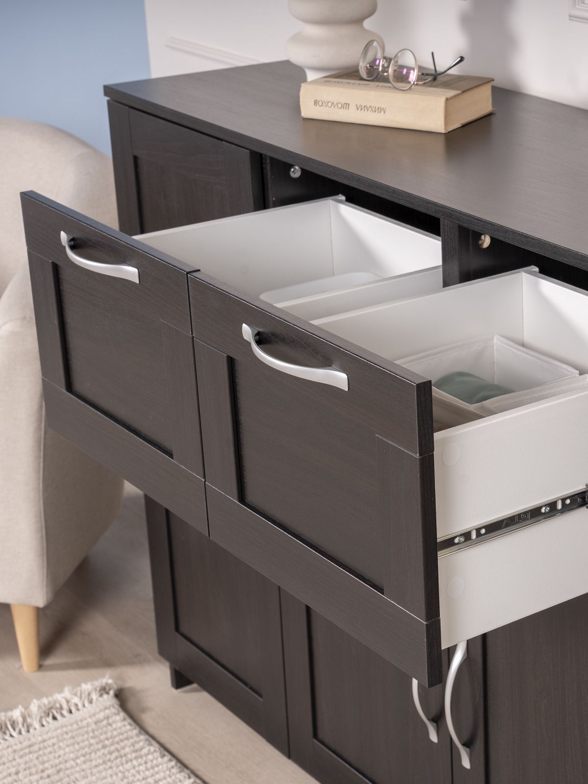 Тумба СИРИУС будет знакома поклонникам мебели IKEA по серии BRIMNES. Продуманный дизайн и функциональность не оставят равнодушными любителей раскладывать все по полочкам. Невероятно вместительная тумба идеально впишется в гостиную, столовую или кабинет. Удобные ящики будут брежно хранить самое необходимое под рукой, а на полках можно разместить посуду, книги, одежду и игрушки.