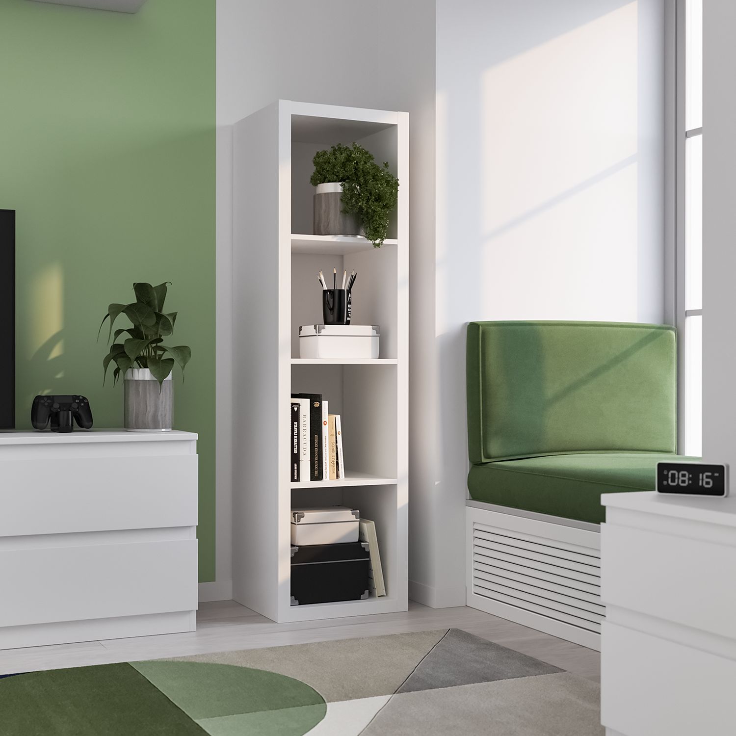 Стеллаж Фора, 4 полки, 147x42х38 см, белый