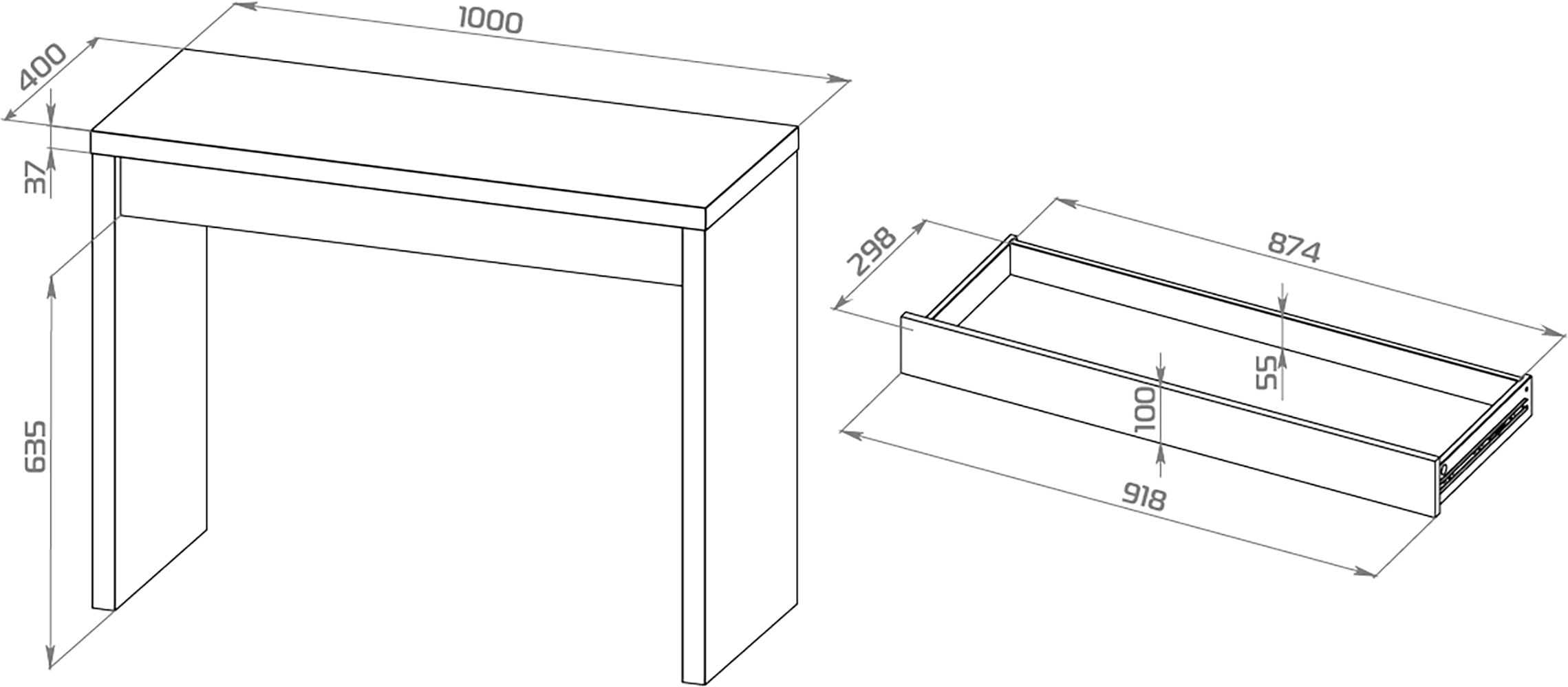 Стол туалетный Энкель с ящиком, 100x78х40 см, белый
