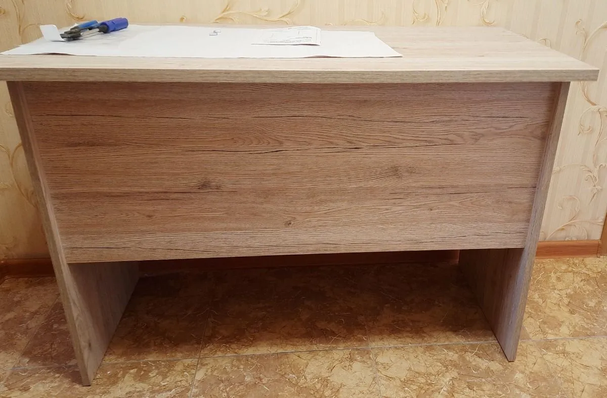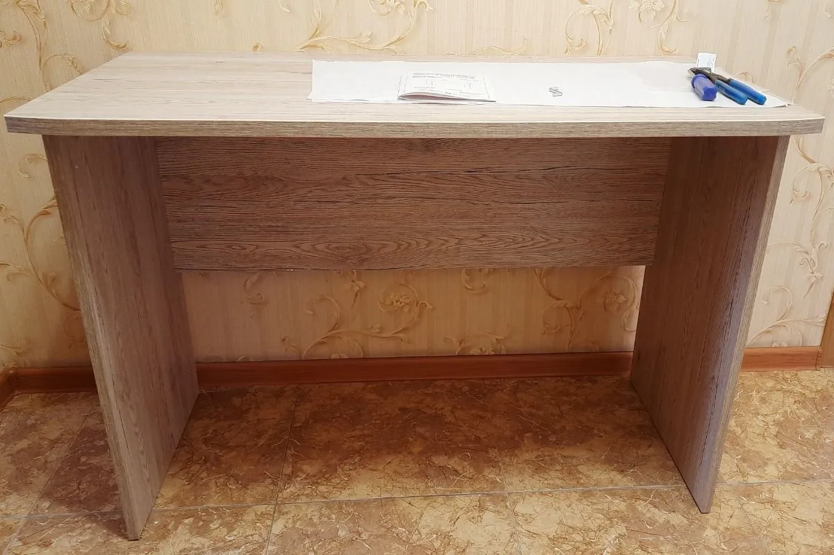 Очень симпатичная парта от надёжного производителя. А в сочетании с тумбой и навесной полкой получится шикарный комплект мебели. Нравятся скошенные углы на столешнице и немного рельефная поверхность под дерево, которая не препятствует нормальному письму (даже по довольно тонкой бумаге шариковая ручка плавно пишет).