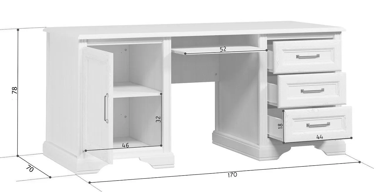 Письменный стол Stylius с боковыми тумбами предоставляет еще больше возможностей для продуктивной учебы и работы. Увеличенная поверхность (170×70см) позволит комфортнее расположиться при выполнении текущих дел и разместить канцелярские принадлежности, светильник и чашечку кофе. Высоту 78 см наверняка оценят люди высокого роста. В таком варианте им удобно будет держать руки на клавиатуре, расположенной на выкатной полке.
