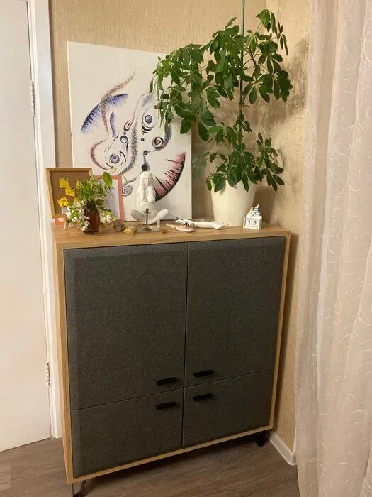 Тумба Grace представлена оригинальной моделью с четырьмя распашными дверцами разного размера. Это визуально легкая и стильная конструкция на металлических ножках имеет высоту 111 см, ширину 97 см и глубину 41 см. Благодаря таким размерам, она компактно разместится в небольшой комнате и даже заменит небольшой шкаф.