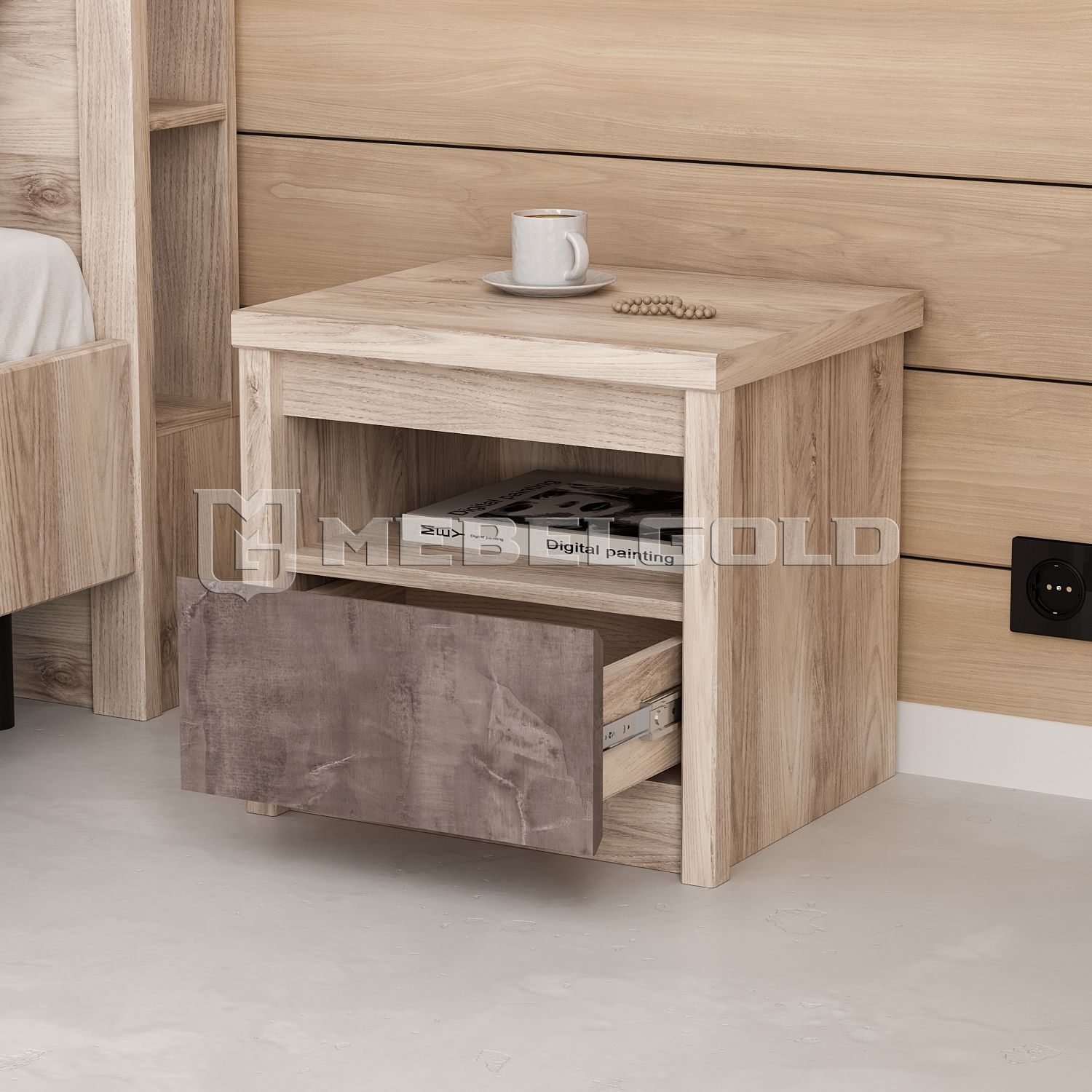 Низкая прикроватная тумба Anrex JAZZ 1S изготовлена в Белоруссии из экологически безопасного материала ЛДСП класса эмиссии Е1. Его поверхность дополнительно покрыта ламинированной пленкой, а на торцы нанесена ПВХ кромка. Благодаря такой отделке, тумбочка приобретает стильный бежевый цвет каштан найроби и серый ящик с отделкой под камень. Такая мебель безопасна в использовании и может быть установлена в детских комнатах.
