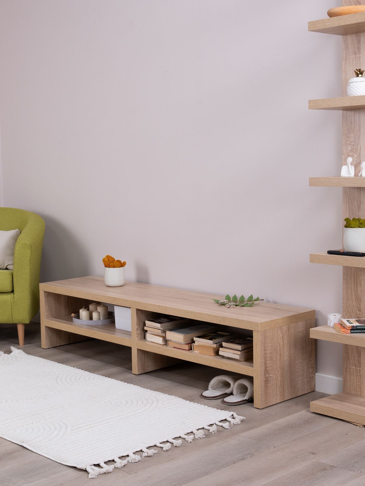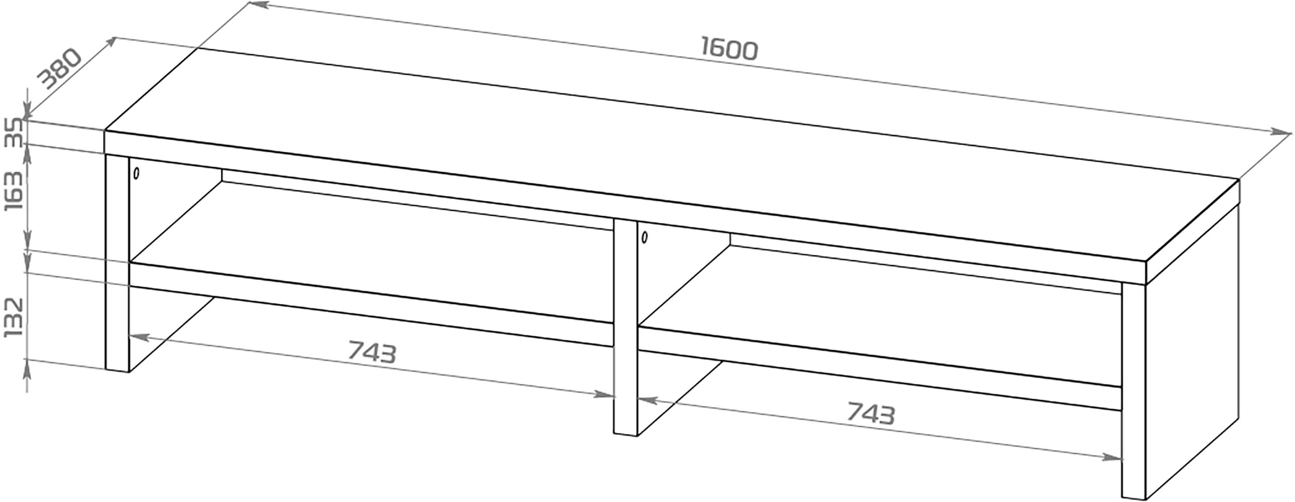 Тумба ТВ Энкель, 2 полки, 160х37x38 см, дуб беленый